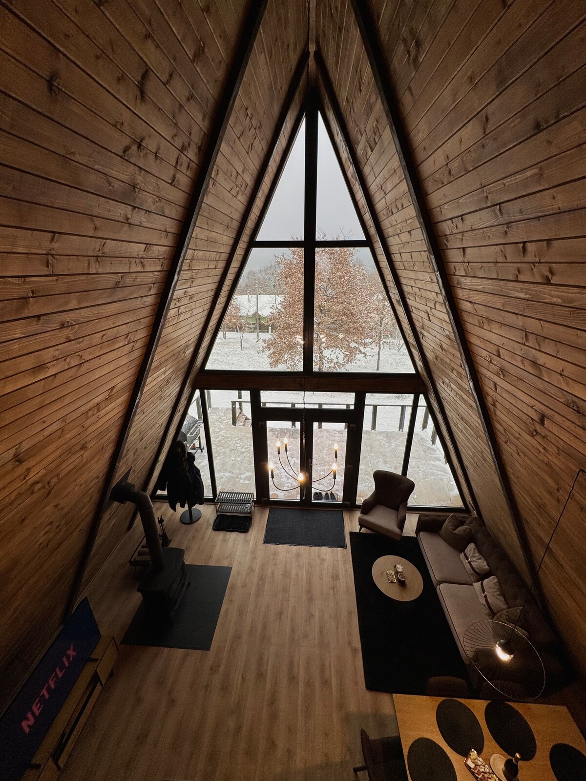Ontsnap naar een gezellige A-frame hut in de buurt van het Surducmeer, in het rustige dorp Fârdea, Timiș County. Dit stijlvolle toevluchtsoord wordt omgeven door heuvels en natuur en biedt een prachtig uitzicht op het meer en totale privacy. Het is ideaal voor maximaal 6 gasten en beschikt over 2 slaapkamers met tweepersoonsbed, een slaapbank, een ruime woonkamer met open haard, smart-tv's, gratis wifi en een volledig uitgeruste keuken. Geniet van het terras, de professionele BBQ en een warme, ontspannen sfeer, perfect voor stellen, gezinnen of zelfs kleine groepen.