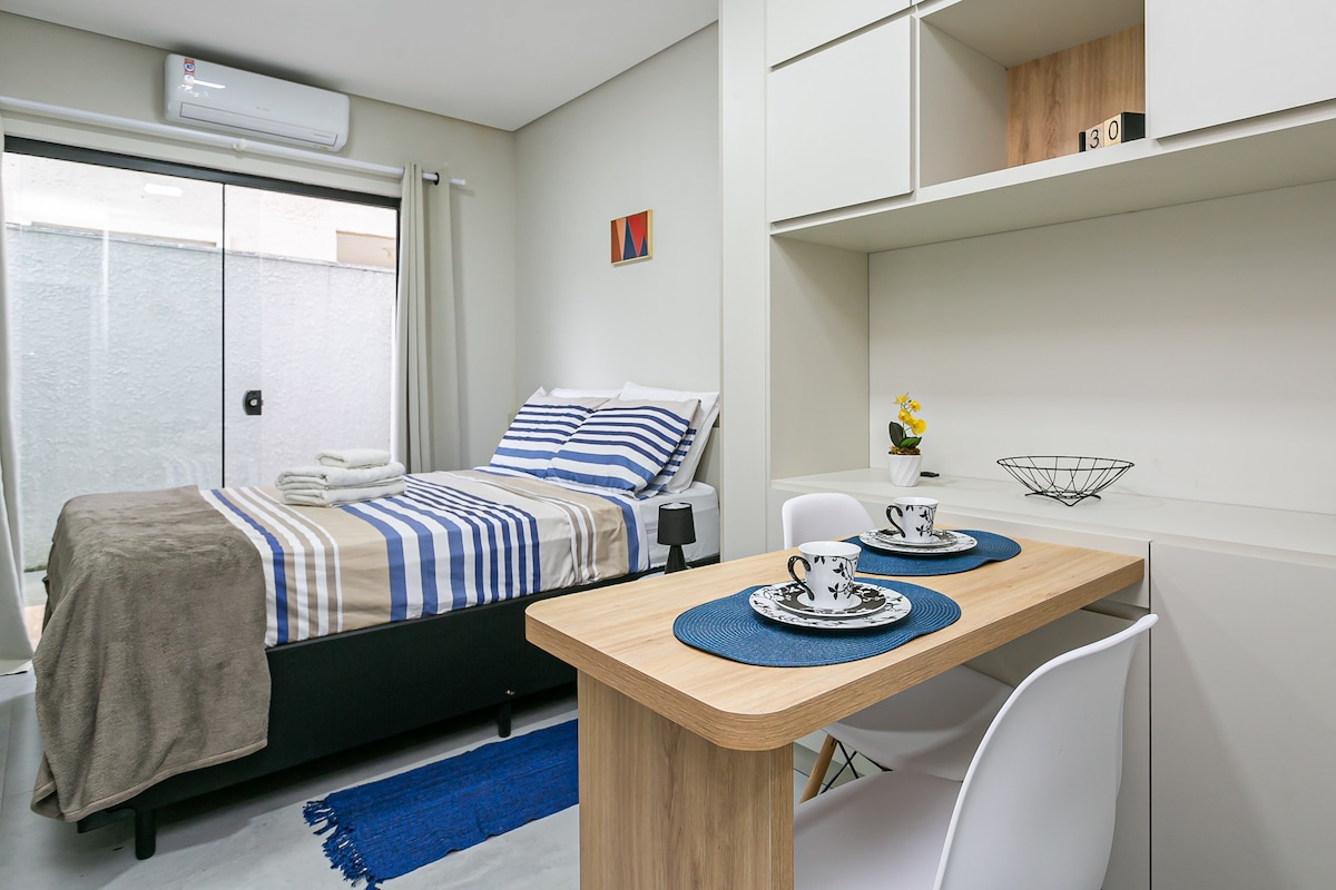 Cozy studio in quiet residential area just few minutes walk from cafes, markets, shops and close to the main natural attractions of Florianópolis such as hikes, dunes and beaches. Fully equipped, with air-conditioner, fast Wi-Fi, washer and dryer, cable TV, video-game and Netflix for those rainy days. The space is ideal for solo travelers, couples and families looking for a quiet place and well located to explore the beauties of Santa Catarina Island.