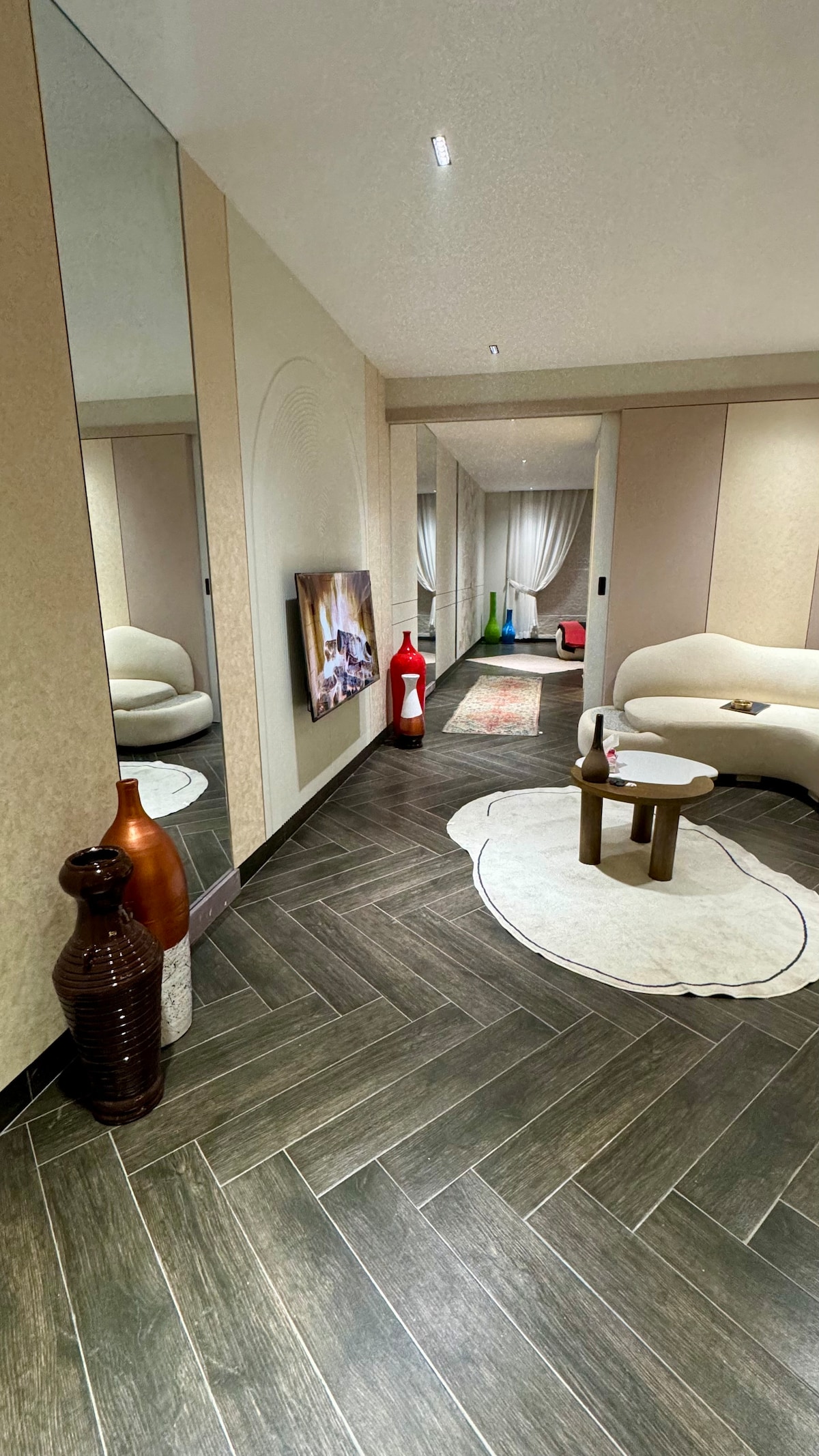 Een sculpturale slaapkamer waar rondingen de ruimte verzachten en licht zachtjes over warme, getextureerde oppervlakken beweegt. Arc & Aura is ontworpen als een rustige compositie van vorm, flow en gevoel, die stilte uitnodigt zonder karakter op te offeren. ✨ USP: Een designverblijf in Lahore, geïnspireerd door vloeiende architectuur. • Boogvormige elementen, op maat gemaakte meubels en gelaagde materialen creëren een meeslepende sfeer die artistiek, intiem en diep kalmerend aanvoelt.