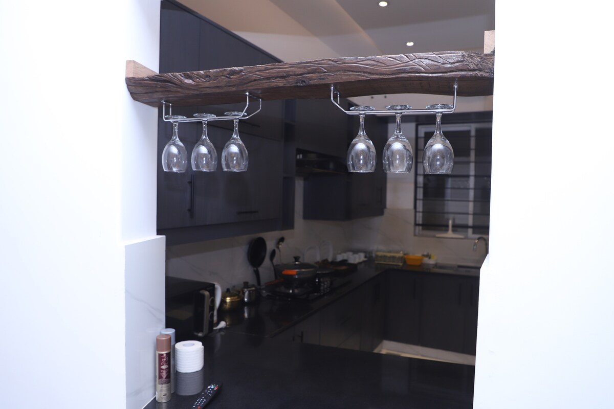 Welkom bij onze prachtige Airbnb gelegen in het hart van de serene en chique gemeenschap van Fase 5 DHA, die een luxe verblijf biedt in een volledig ingerichte moderne unit. Slaapkamer met aangrenzende badkamer. Geniet van een ruime lounge met een eigen open naar de hemel,samen met een open keuken en een eethoek. Parkeren op het terrein. Ontdek gemak en uitzicht in dit prachtige toevluchtsoord. 3 minuten lopen naar Sector Park 7 minuten lopen naar Penta Square Mall en commercieel gebied Op 15 minuten rijden van de internationale luchthaven Alama Iqbal