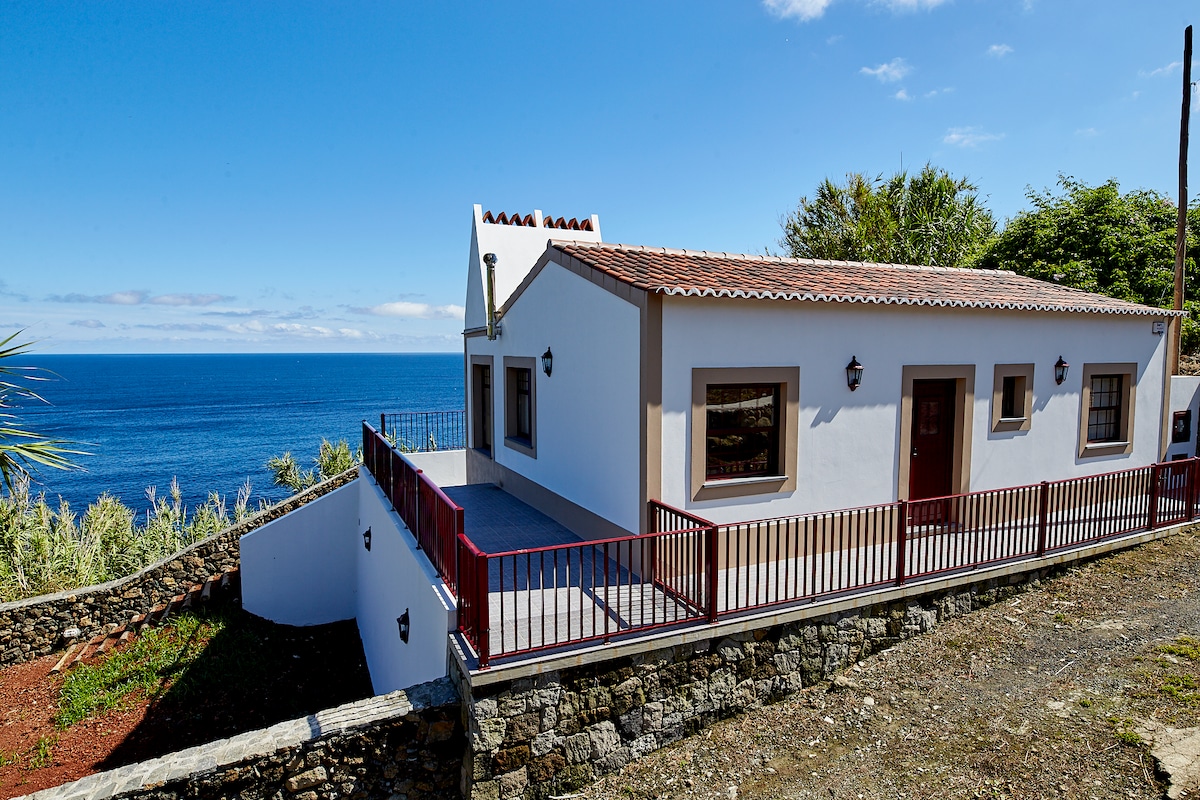 Onlangs herbouwd huis, gelegen op een van de mooiste baaien op de Azoren. Het ligt op de helling van de Quatro Ribeiras en biedt een uniek uitzicht op zowel de zee als de rotsachtige helling van de baai. Volledig uitgerust met twee slaapkamers (één suite), twee badkamers, een open keuken en woonkamer, verwarming, balkon en buitenruimte met barbecue en vuurplaats. Gratis eigen parkeergelegenheid. Schoon en veilig verzegelen. Bereid je voor op een onvergetelijk verblijf!