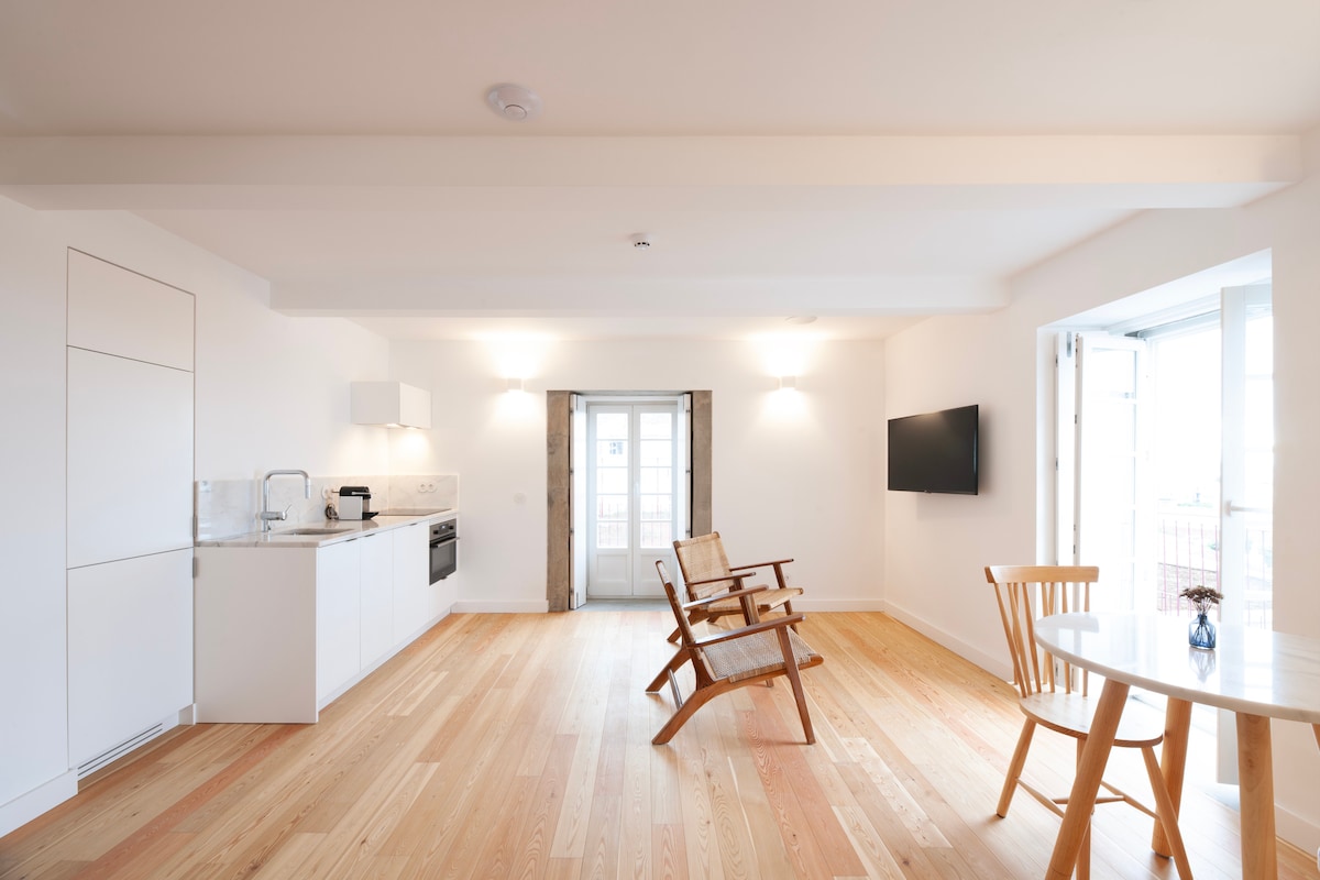 Dit appartement 01 - Arco Apartment - zit bij een complex van 6 appartementen, AngrA+. Het is een studio (T0), begane grond en geschikt voor mindervaliden. Het is 40 m2 en wordt overheerst door een 17e-eeuwse cantaire boog. Het heeft een groot (17m2) exclusief balkon met tafel/stoelen en met uitzicht op de tuin, stad en zee. Maximale bezetting van twee personen. Gemeenschappelijke ruimtes zijn een tuin, een buitenzwembad, een lounge met een bibliotheek en open haard, een terras en een zelfbedieningswasserette.