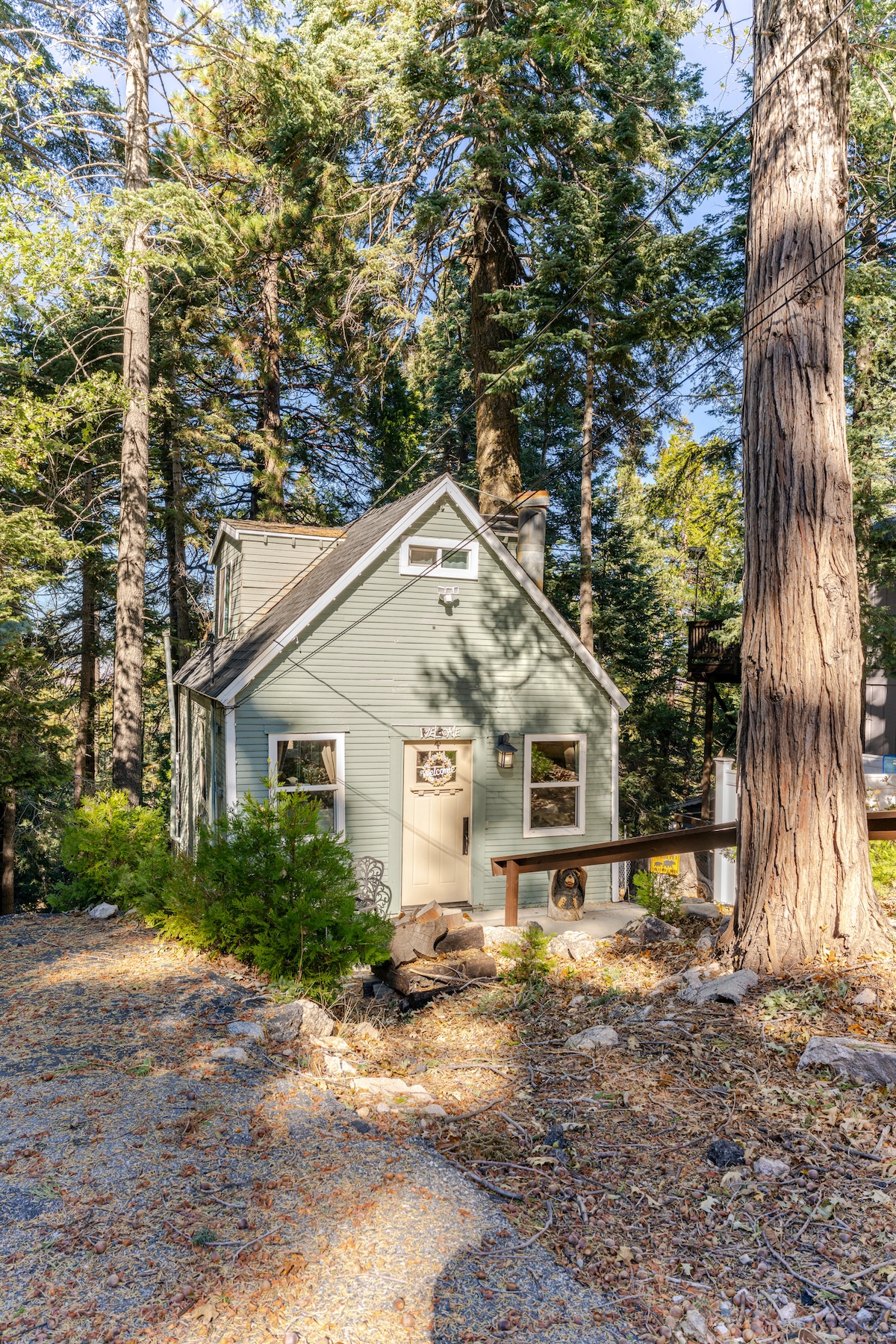 Welkom bij Little Bearfoot Cabin! Een eenvoudige hut uit 1925 met moderne spa-achtige voorzieningen en een apart A-Frame-kantoor met snelle wifi voor digitale nomaden. Luxe zomerkampvibes. Maak het gezellig bij de vuurplaats en maak s'mores, geniet van diners in de buitenlucht en ontspan in het bubbelbad onder torenhoge naaldbomen. Als je niet buiten in de prachtige tuin bent, kun je genieten van de centrale airconditioning/verwarming. Op minder dan anderhalve kilometer van het meer, het dorp en Lake Arrowhead Brewery. Toegang tot de privépaden. Hond- en kindvriendelijk. EV-oplader