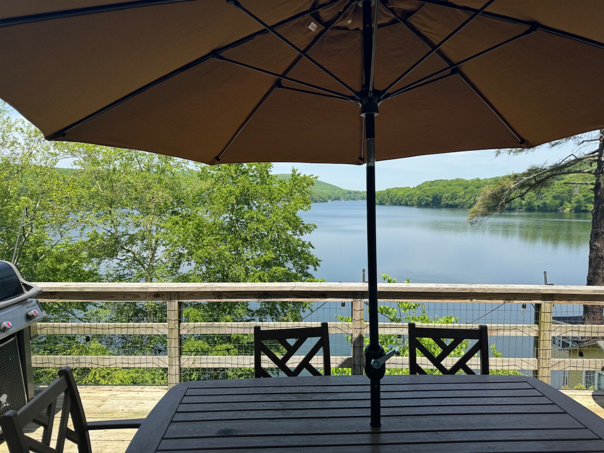 Een originele hut in Candlewood-stijl. Het huis is bijgewerkt om alle moderne gemakken te bieden. Het beschikt over een grote open haard in de woonkamer, veranda met uitzicht op het meer, centrale verwarming en airconditioning en een volledig uitgeruste kokskeuken. Het is aan het noordelijke deel van Candlewood Lake met directe, eigen toegang tot water vanaf de kust of het dok. Een schuimlelieblok, twee SUP en twee opblaasbare kajaks voor twee personen zijn beschikbaar voor gebruik van 1 mei tot 1 november.