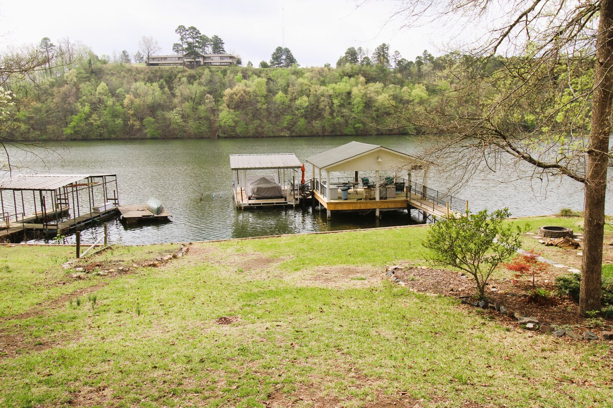 Ontdek de charme van Hot Springs in onze uitnodigende eengezinswoning, met een prachtig 180 graden uitzicht op Lake Hamilton. Neem je boot mee naar onze eigen aanlegsteiger en verken het rustige water. Ons huis ligt op slechts 11 mijl van Oaklawn en is perfect voor het creëren van blijvende herinneringen. Ontspan op je eigen balkon, vis vanaf het dok, neem een verfrissende duik of ontspan in de hot tub. Met een verscheidenheid aan attracties in de buurt belooft je uitje in Hot Springs onvergetelijke ervaringen en heerlijke avonturen