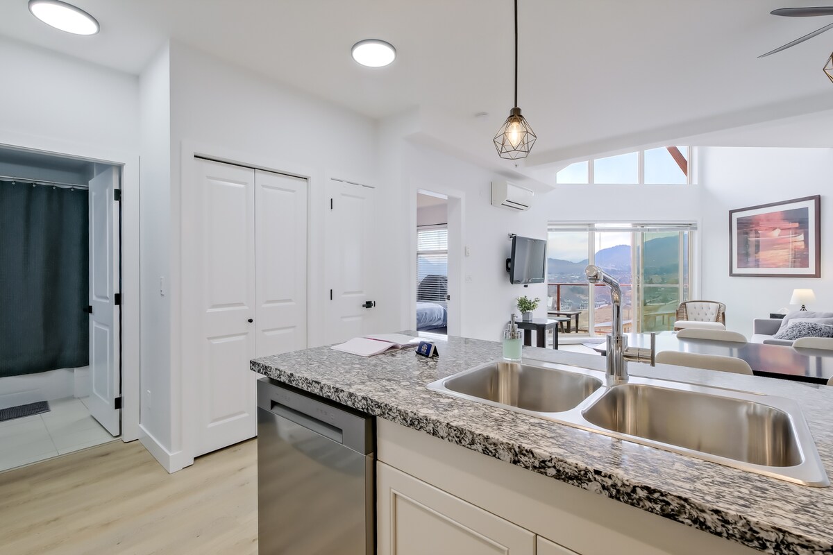 Je semi-landelijke gebied VEREIST EEN VOERTUIG! (Er is veel te zien en te doen!) BONUS... Je parkeerplaats binnen is *GRATIS!* Geniet van UITZICHT OP HET MEER en DE BERGEN en *GRATIS* VOORZIENINGEN zoals... *4-SEIZOENEN HOTTUB *BUITENZWEMBAD *FITNESSRUIMTE *GROEN PUTTEN *SCHAKEN *BASKETBAL *TENNIS *BADMINTON *PICKLEBALL *PINGPONG *BILJART Je verblijft in Copper Sky Resort-stijl appartementen gelegen in het centrum van de Okanagan Valley. Een voertuig is een MUST, zodat je echt kunt genieten van de Okanagan! Je verhuurders, Robert en Sandi WELKOM!