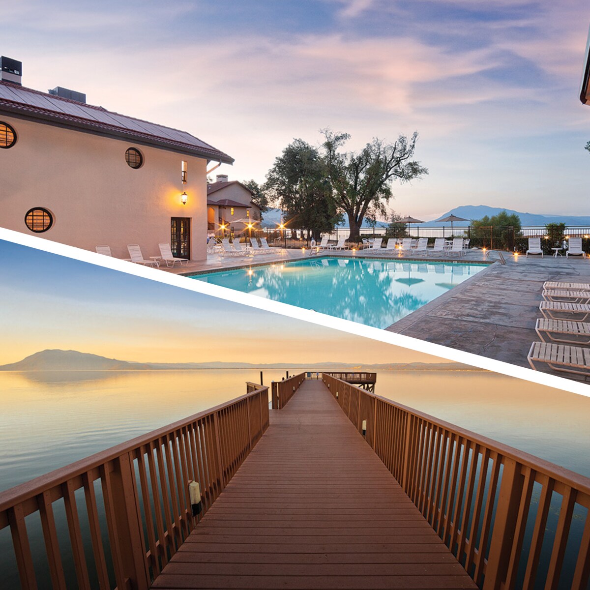 Dit resort ligt in Noord-Californië naast het grootste natuurlijke zoetwatermeer van de staat en brengt de klassieke vakantie in Americana terug. • Inchecken van gasten moet 21 jaar of ouder zijn met een geldig legitimatiebewijs. Parkeren is beperkt • Gasten moeten een bankpas/creditcard hebben om $ 100 restitueerbare borg in de wacht te zetten bij het inchecken van het resort. • Naam op reservering moet overeenkomen met identiteitsbewijs met foto bij inchecken. Bevestig je voor- en achternaam zoals vermeld op de ID bij het indienen van een reservering.