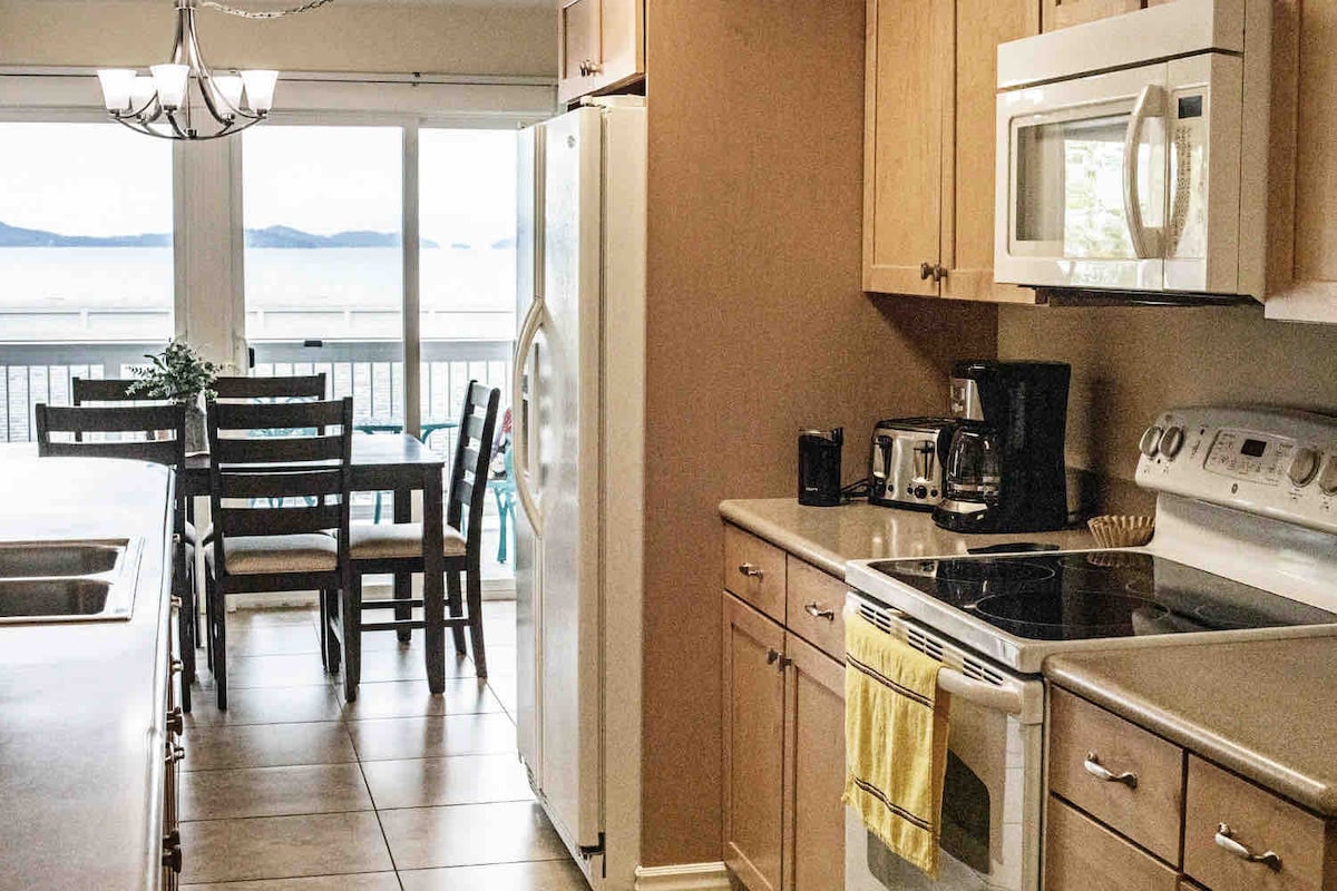 Ontspan en geniet van een barbecue op het dek met een prachtig uitzicht op 3 eilanden en zeilboten in Big Arm Bay of maak een korte wandeling naar het strand of de jachthaven. Het interieur is gerenoveerd en de tuin is aan het rijpen. Een mini-split voor je verwarmings- en koelbehoeften houdt je comfortabel terwijl je geniet van het uitzicht in een grote woonkamer. Je vindt er een grote eettafel voor maaltijden of spelletjes. We hebben een goed gevulde keuken met potten en pannen en kruiden. De wifi zal je apparaten en het 65 inch flatscreen met Roku laten werken.