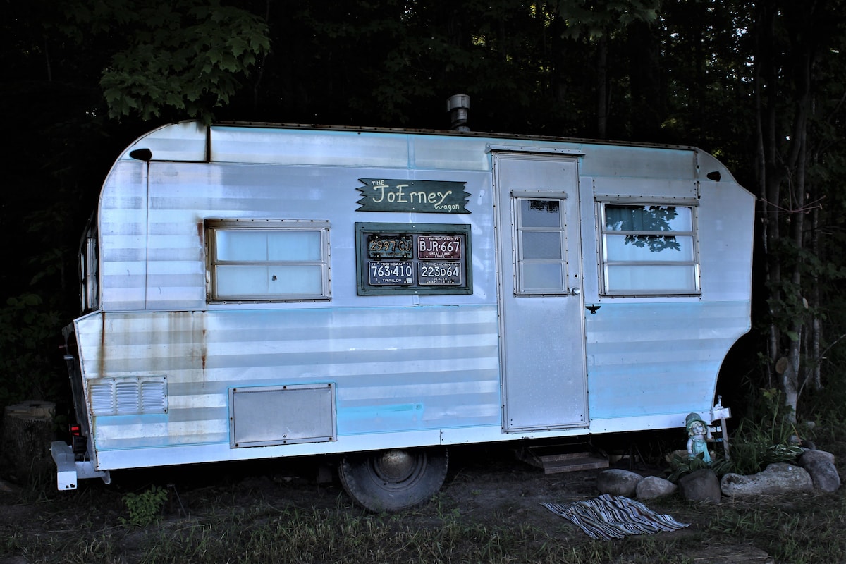 JoErney 1965 Anderett Camper ligt aan de rand van het bos met uitzicht op een veld met een prachtig uitzicht op zonsopgang. Daarnaast biedt het een perfecte gelegenheid voor het bekijken van de donkere lucht. De JoErney vintage camper is opgeborgen in een rustige, rustige buitenomgeving naar een andere tentplaats. Terwijl JoErney 2 personen slaapt, is er voldoende ruimte om je tent uit te zetten voor extra slaapplaatsen tot 5 personen. De JoErney is perfect voor je rustieke kampeeruitje.