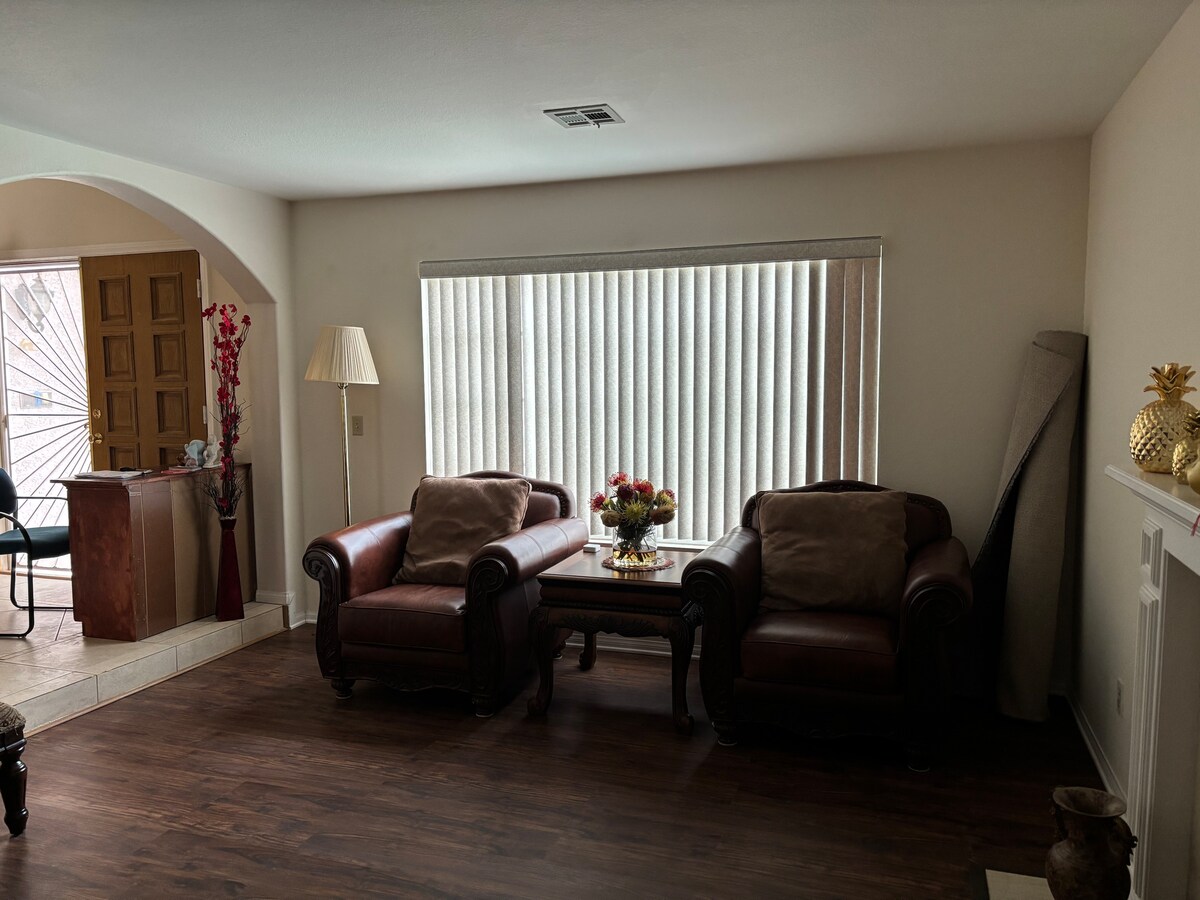 Tijdens je verblijf in deze ruime, rustgevende accommodatie vergeet je al je zorgen. Uitgerust met 4 kamers, 2 volledige badkamers, een woonkamer met tv, eetkamer, keuken en een grote patio! 5 minuten van vele winkels, supermarkten, benzinestations, ziekenhuis en dierenarts 🛍️ 1,5 blokken verwijderd van de ingang van de snelweg 🚘 15 min naar Fremont Street 🍾 20 minuten naar de casinostrip 🎰 25 minuten naar luchthaven ✈️ Van harte welkom: ✅ Aardige mensen ✅ Goed opgevoede huisdieren ✅ Tieners en kinderen onder begeleiding van volwassenen VERBODEN ❌Roken ❌Drugs ❌Geluid na 23.00 uur ❌Feestjes