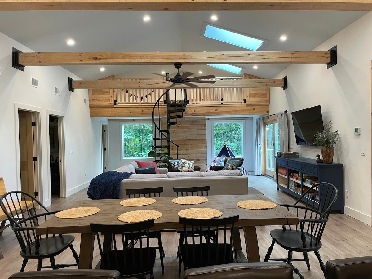 Beautiful cottage in the Adirondack Mountains situated on over an acre of waterfront property with River access. Enjoy swimming, Kayaking and fishing on the Hudson River, all right from the backyard of the house. It has a great deck which overlooks the river with perfect views for enjoying sunset cocktails… Yard also has two fire-pits for night time fun and laughs. Cabin is close to skiing, snowmobiling trails. Perfect for a family getaway to make awesome memories. STAY, SPLASH, SMORES!!!!!