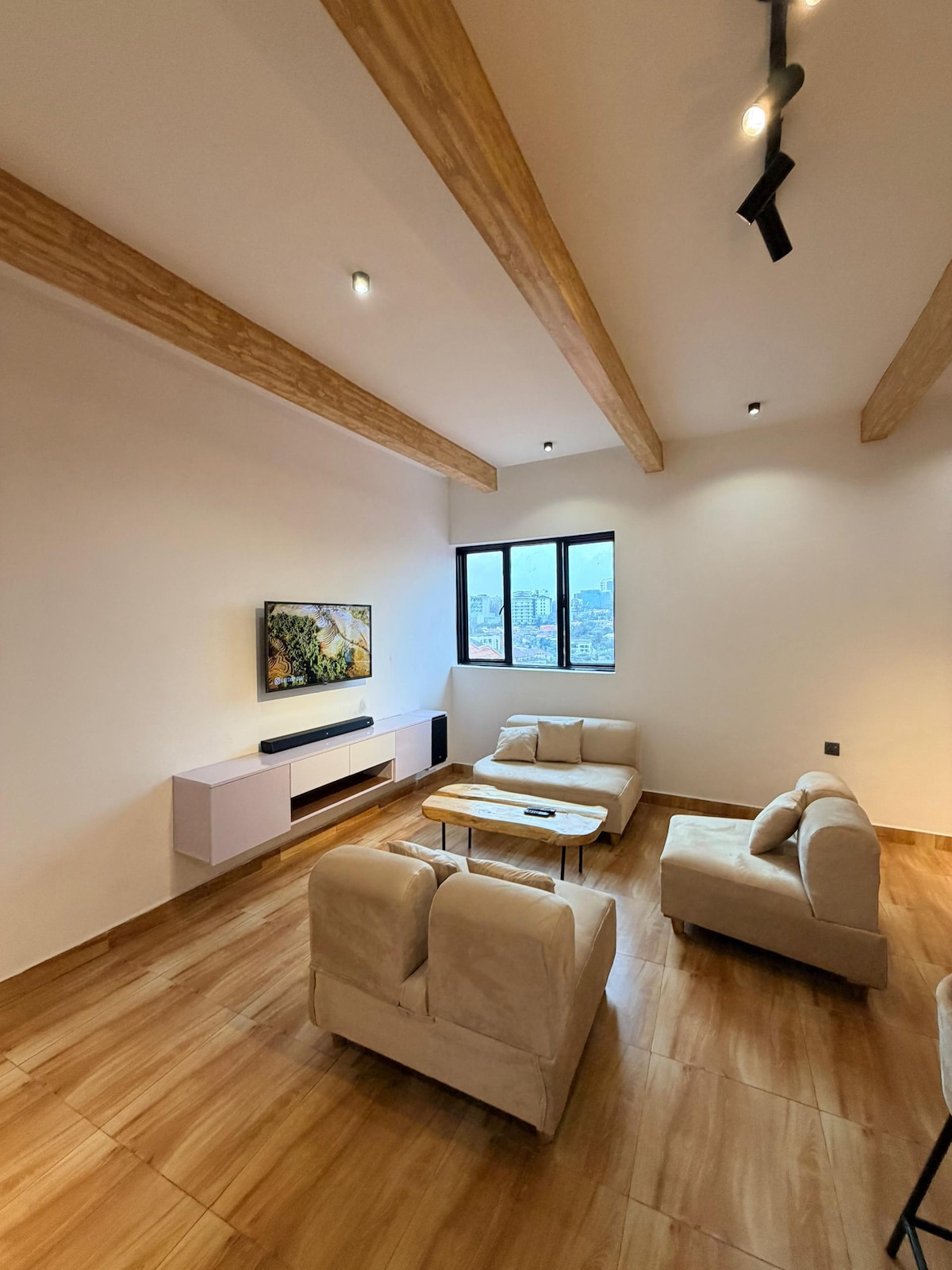 Ervaar luxe in de Penthouse Studio, Jabo Suites Verblijf in de moderne penthouse-studio op de 5e verdieping met een eigen buitenbad met een prachtig uitzicht op de heuvels van Kigali. Geniet van een chique leefruimte met een queensize bed, 55-inch tv, Netflix, snelle wifi en een volledig uitgeruste kitchenette. Ontspan bij het zwembad en de fitnessruimte voor bewoners, profiteer van de dagelijkse schoonmaak, 24/7 beveiliging, gratis parkeren. Dit serene toevluchtsoord in Kibagabaga is perfect voor zaken of vrije tijd en zorgt voor comfort, gemak en privacy.