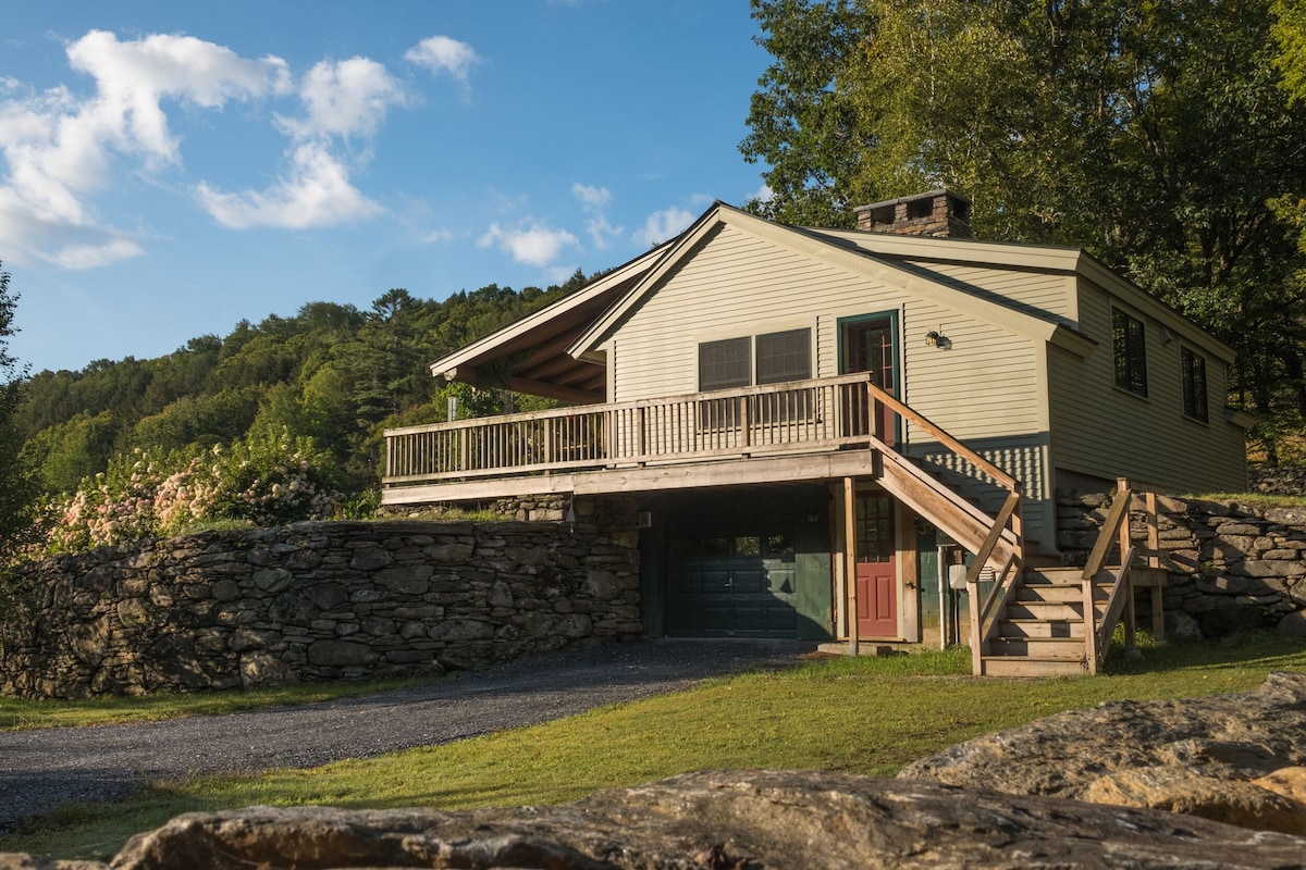 Ga naar Pine Ridge Cabin! Een afgelegen typisch Vermont blokhut genesteld onder een met dennenbomen gevulde bergkam. Drink je ochtendkoffie op het grote terras met uitzicht op Elm Brook voor je dag wandelen, brouwerijhoppen of op de pistes! De hut biedt open plattegronden rond de grote open haard met stenen gezicht, de perfecte ruimte voor bijeenkomsten van familie, vrienden of een retraite voor koppels! Pine Ridge Cabin ligt op slechts een paar minuten van de stad, winkels, restaurants, bars en spa!