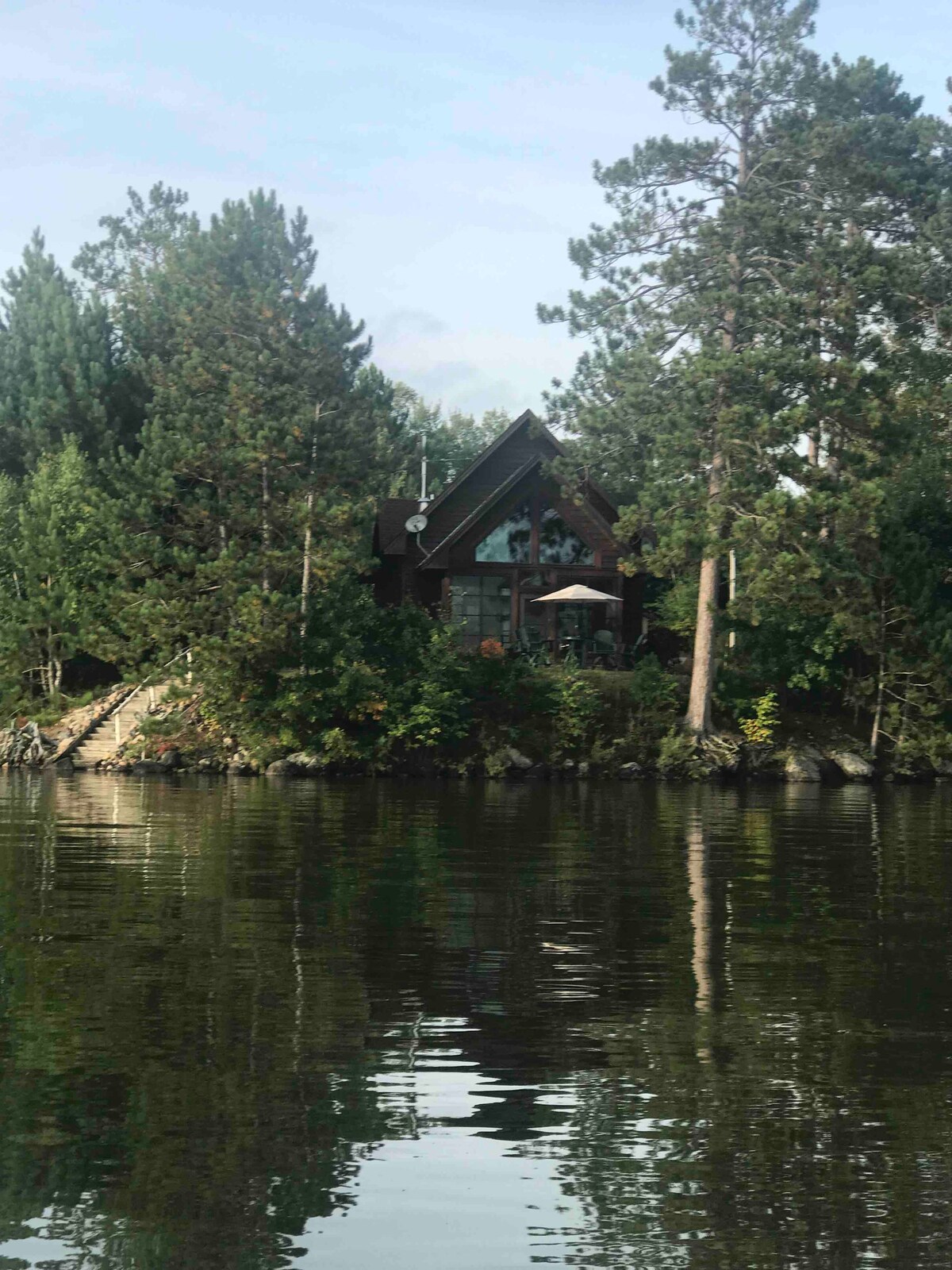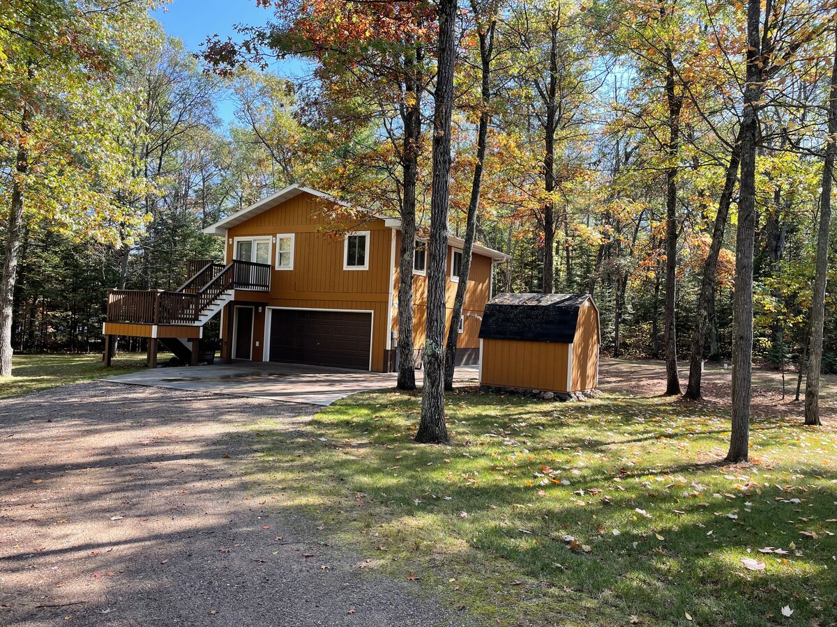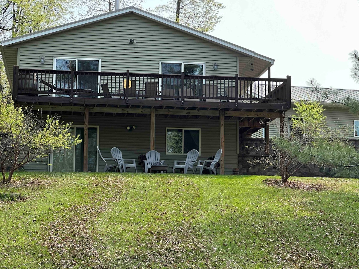 Gezellig huis beschikt over warme verlichting en verfkleuren en creatieve Northwoods met een modern tintje. Tot de voorzieningen behoren snel internet, roestvrijstalen apparaten, koffiezetapparaat, wasmachine en droger aan de voorkant, streamingdiensten/Apple TV, drie flatscreen-tv 's, twee open haarden , centrale airconditioning en een zeer efficiënte oven. De woning ligt op 4 beboste hectare (niet aan het meer) aan een goed onderhouden grindweg. Zeer privé. Geen buren in zicht. Wildlife is er in overvloed. Honden zijn ok met goedkeuring en vergoeding.