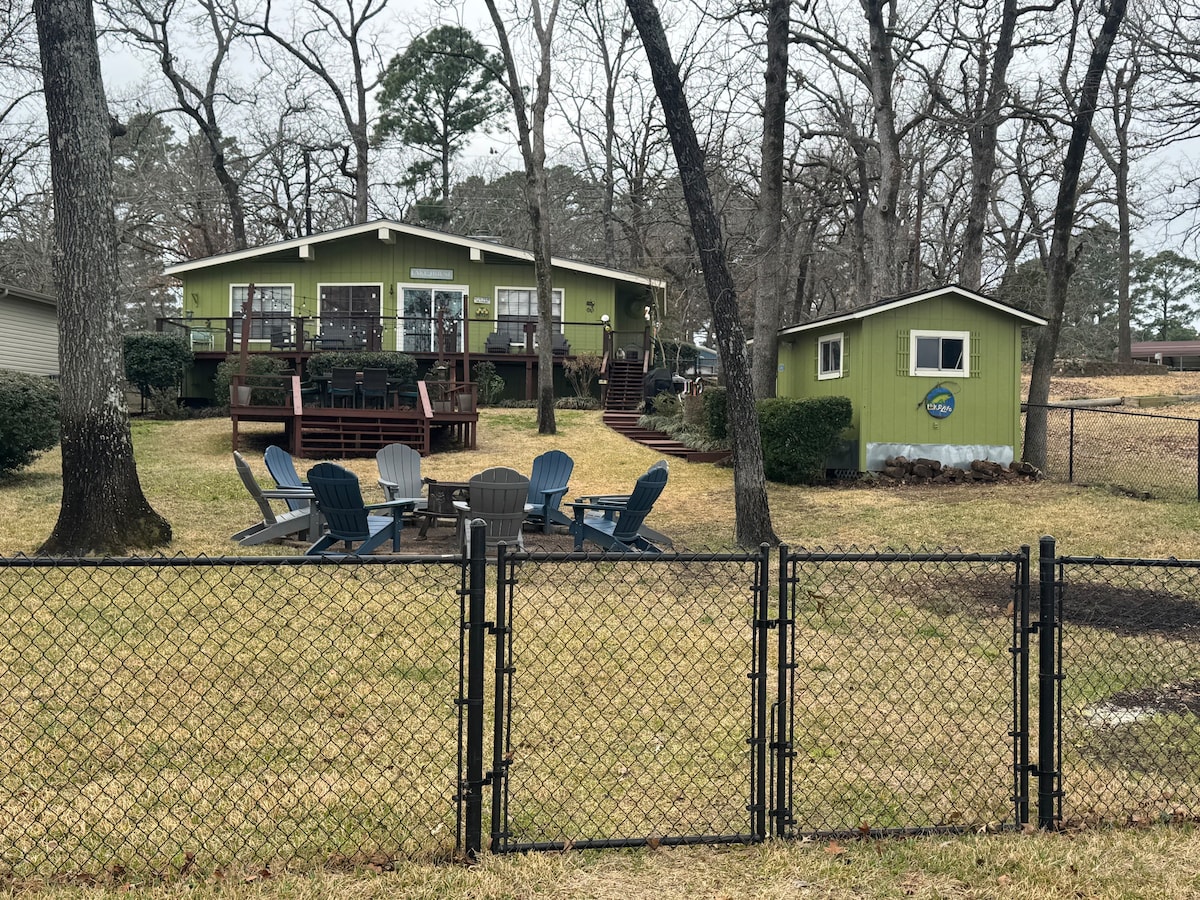 NIEUW PAINTED- nieuwe aanrechtbladen, wastafels, armaturen, interieurverf, vloeren voor het hele huis, meubels en decor, tv's, bordspellen en Amazon Alexa, afgesloten patiohekjes voor kinderen en veiligheid van huisdieren. NIEUW eethoek met lichtsnoer. Enorm omheind achtertuin! Prachtig schaduwrijke woning aan het water. Perfect om te zwemmen...zanderige gladde meerbodem en geweldige koude zakken die je koel houden op warme dagen! Geniet van vissen en neem je bootavontuur mee op Lake Palestine. Leuke familietijd!!!