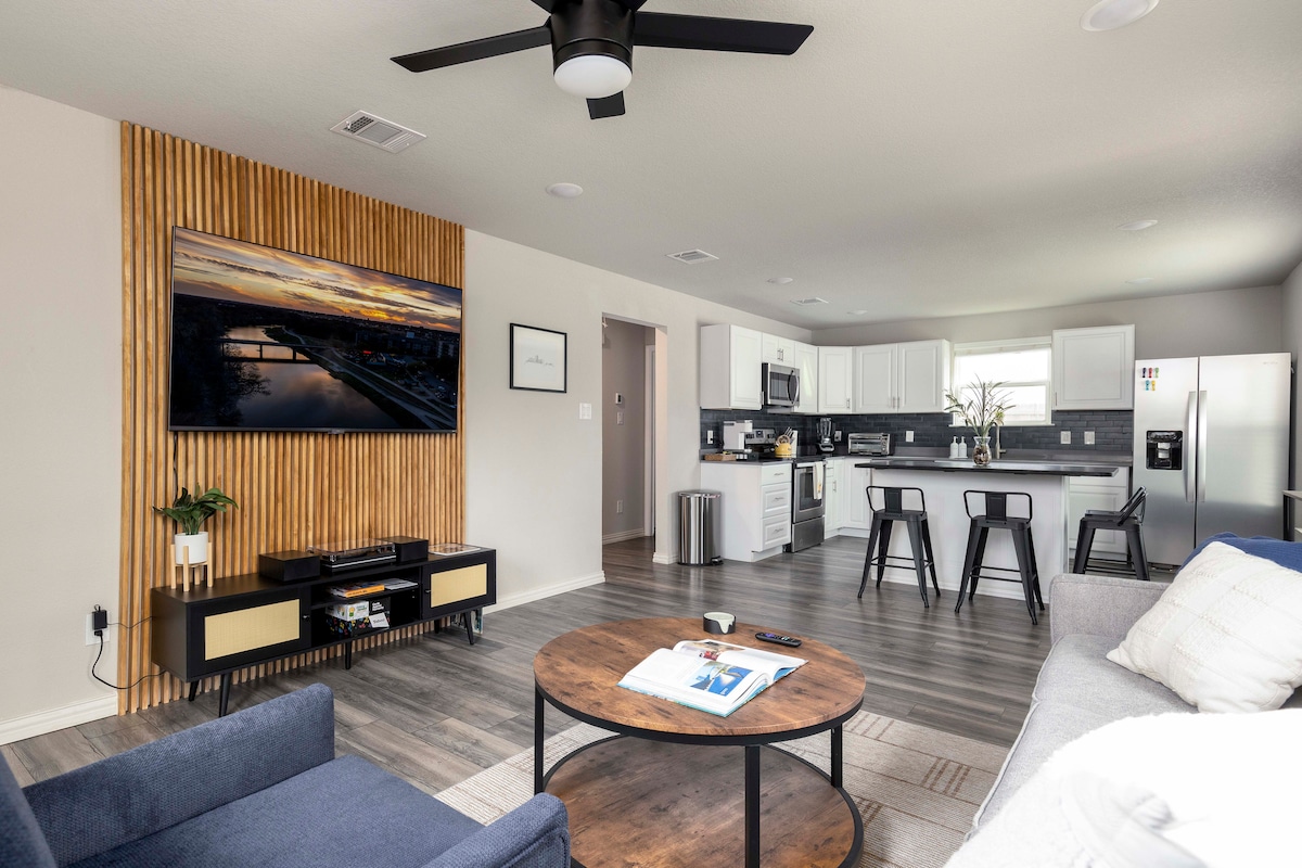 Wij zijn gevestigd in de historische wijk Fairmount, op slechts tien minuten lopen van Magnolia. De ruimte is een modern, nieuw gebouwd, boven de garage studio-appartement met gewelfde plafonds, volledige keuken, eethoek, patio, entertainmentcentrum, queensize bed en badkamer met inloopdouche. Het zit vol met voorzieningen zoals een speciale wifi-gateway, toegang tot streamingdiensten, Leesa-matras, premium koffie en nog veel meer! Ons doel is dat je je op je gemak en thuis voelt tijdens je verblijf!