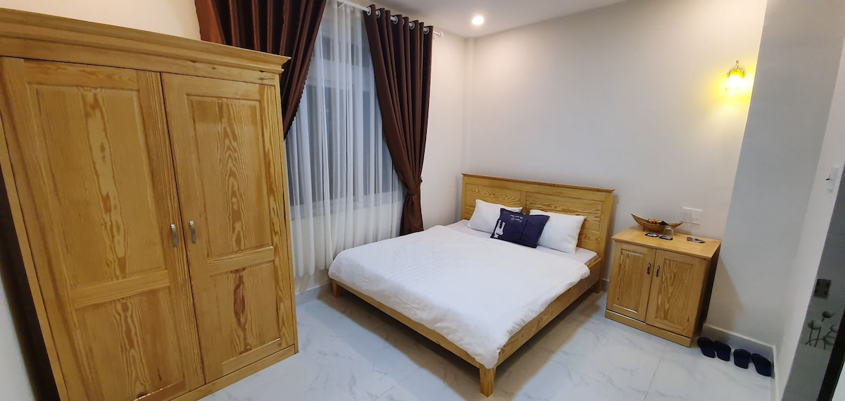 Phòng đôi có cửa sổ cho 4 khách sạch sẽ, tiện nghi, ngay trung tâm di chuyển dễ dàng, có chỗ đậu ô tô, gần các địa điểm như khu Hoà Bình, chợ đêm Đà Lạt. Gần các quán ăn ngon như lẩu gà lá é Ò ó o, bánh ướt lòng gà Long, Phở Hiếu...