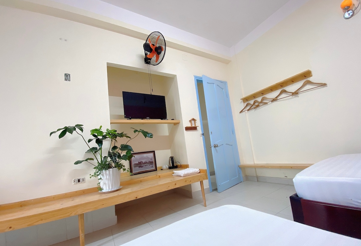 Dit queensize bed in een kamer is geschikt voor 2 personen. De kamer is in een gedeeld huis. Bij XomVui Homestay maken we onze bescheiden plek gezellig en open stijl waar je kunt genieten van de meest huiselijke momenten voor je verblijf :) We houden van honden en katten! En je bent van harte welkom om je huisdieren mee te nemen om in onze accommodatie te verblijven:)