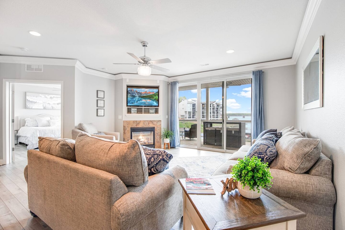 Welkom in onze prachtige vakantiewoning in het exclusieve Lands End Pkwy. Onze accommodatie is een luxe en ruim appartement met 3 slaapkamers, 2 badkamers (9 slaapplaatsen) met een adembenemend uitzicht op het meer en de omgeving. Het appartement heeft ook een privé 2022 27ft Tritoon te huur. Het appartement beschikt over een open ruimte met hoge plafonds voor voldoende daglicht. Je vindt er overal veel aangepaste functies. Andere voorzieningen zijn waterpark, luie rivier, zwembad met waterval.