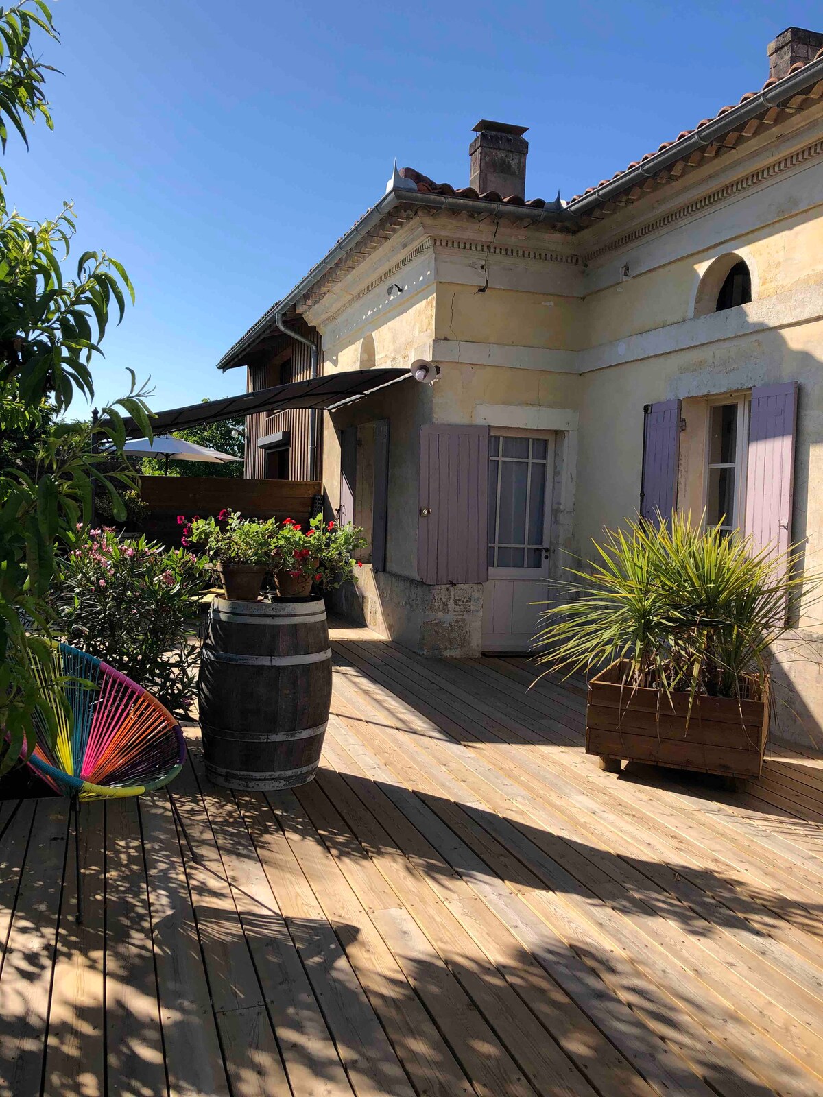 Dit charmante huis met drie slaapkamers ligt in het hart van een biologische wijngaard en is een rustige ontsnapping op slechts vijf minuten van Bourg en op 35 minuten van Bordeaux. De woning is volledig gerenoveerd en beschikt over een gezellige landelijke keuken met open uitzicht Buiten kunt u genieten van een privézwembad en een barbecueplek, ideaal om te ontspannen met familie of vrienden te midden van de wijnstokken. Comfortabel en goed gelegen, dit huis is een prachtige uitvalsbasis om de regio Bordeaux te verkennen of gewoon tot rust te komen in een prachtige landelijke omgeving.