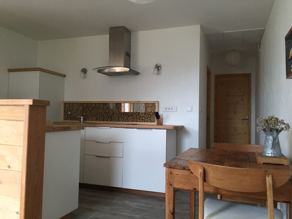 In een chalet, een gezellige nieuwe accommodatie, te voet bereikbaar via een klein pad. Zeer rustig, eigen terras en tuin, uitzonderlijk panoramisch uitzicht op de vallei op het zuiden/westen. Vrijetijdsbasis en dorpscentrum 600m lopen, Openbare parkeergelegenheid. 1 grote slaapkamer, een converteerbaar voor 1 kind in de grote kamer, tv, wifi, badkamer/toilet. Keuken: kookplaat, oven, magnetron koelkast /vriezer oven, raclette machine,blender, waterkoker koffiezetapparaat.