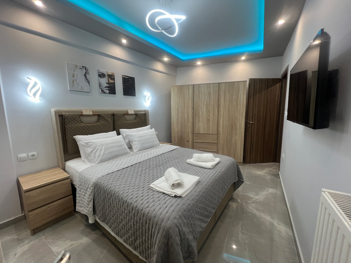 Welkom in ons lichte en comfortabele appartement, in een rustige buurt, op slechts 1 km van het centrum van Larissa! Het is het huis waar ik woon als ik niet verhuur, met zorg en zorg. Met twee slaapkamers, een comfortabele woonkamer met een keuken en een groot balkon is het perfect om te ontspannen, te werken of de stad te verkennen. Of je nu voor een korte reis of een langer verblijf komt, dit is waar je het gevoel hebt dat je door een vriend wordt ontvangen. Ons huis is open en wacht op jou om het te ervaren!