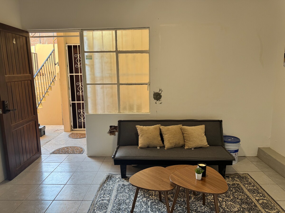 Disfruta de la comodidad de este alojamiento tranquilo e independiente, ubicado en la avenida principal, cerca del seguro social, tiendas de conveniencia y farmacias. Con fácil acceso a transporte público. Cuenta con: Baño propio en el interior Cama matrimonial Aire Acondicionado Mesa confortable con 2 sillas Barra de cocina Closet TV Estufa de inducción Cafetera Utensilios de cocina Wifi Estacionamiento dentro de la propiedad o sobre avenida principal