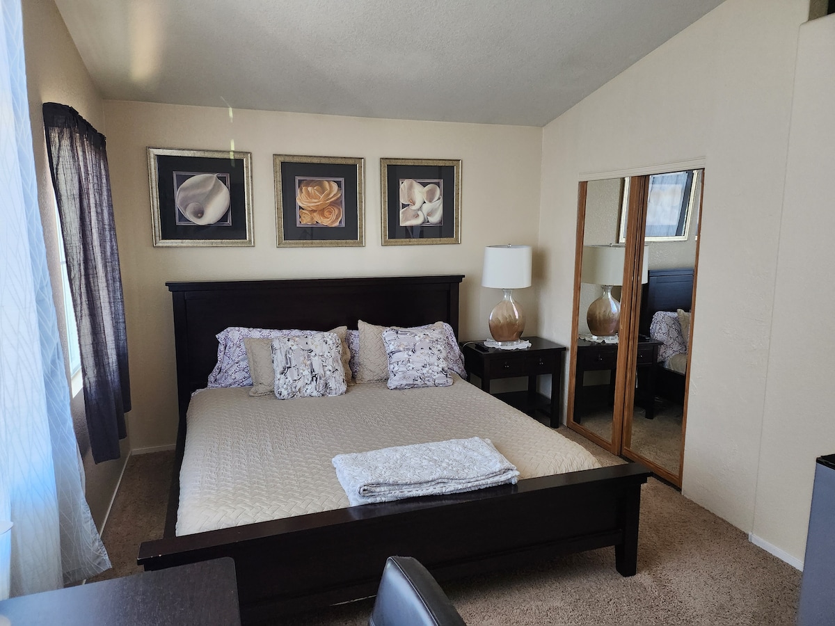 2 Bdrm. Casita op PRACHTIG PRIVÉTERREIN. Gelegen aan de oostkant in de buurt van de bergen. Wandel gratis de Sunrise Mountain op. Geweldig uitzicht op de bergen. Schoon, stil en veilig. Gasten hebben toegang tot EEN EIGEN zwembad, spa, B-ballcourt, patio en putting green met 4 holes. Gratis parkeergelegenheid, snelle WIFI, smart-tv, volledig bad, woonkamer, minikoelkast, magnetron, koffiezetapparaat, ijsmachine, strijkijzer, enz. Ontsmet, beveiligd en zoet ! Ontspan in het zwembad, de spa of de patio zonder 10 vreemden ! ULTIEME ONTSNAPPING !