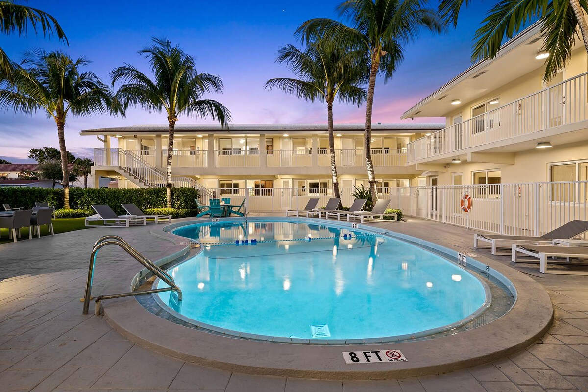 Gezellige studio aan het strand in het prachtige Lauderdale-by-the-Sea! Ervaar het ultieme stranduitje in onze charmante studio aan het strand, op steenworp afstand van het gouden zandstrand van Fort Lauderdale. Word wakker met een adembenemend uitzicht op de oceaan en val in slaap met het zachte geluid van de golven. Deze studio ligt op slechts vijf minuten lopen van prachtige lokale restaurants, boetiekjes en levendige bars. Geniet van de ware essentie van ontspanning met alle moderne voorzieningen die je nodig hebt voor een zorgeloos verblijf.