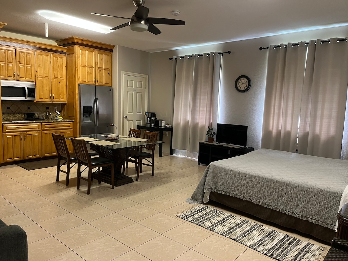 (REF FISCAAL NUMMER TA005-218-0480-01) Geniet van de tijd in een kleine (384 vierkante voet) zelfstandige gastenhut met een volledige keuken in een landelijke omgeving. Als je het geluid van coquikikkers 's nachts niet opdringerig vindt voor je slaap, dan zou deze ruimte geschikt zijn. Hoewel je privacy hebt, verblijft mijn vader in het hoofdhuis voor het geval je persoonlijk hulp nodig hebt. Wij zijn gevestigd op ongeveer 100 voet hoogte, wat zorgt voor relatief koelere nachten.