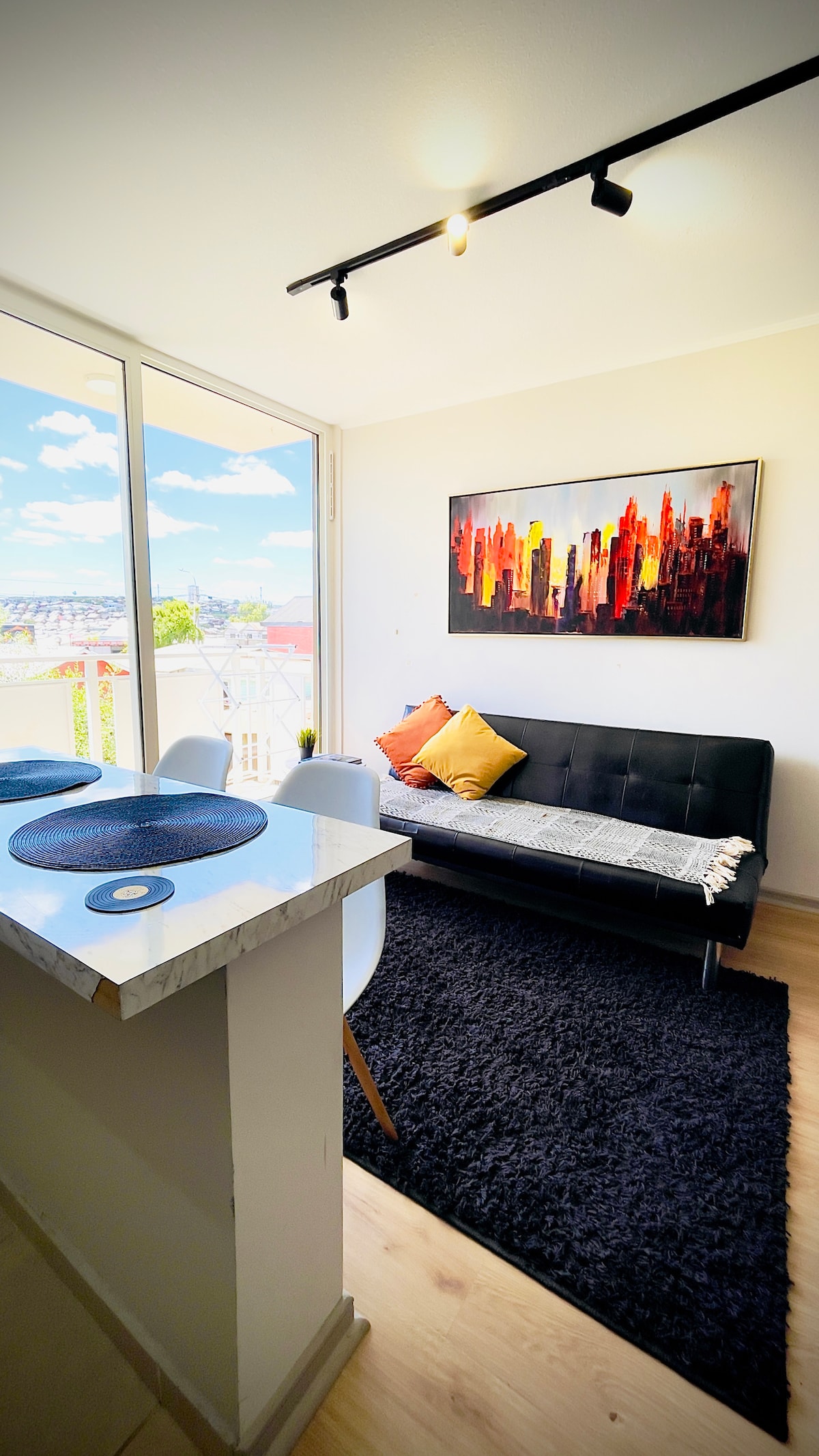 Nieuw en gezellig executive studio-appartement, minimalistische vintage stijl, comfortabel geconditioneerd voor twee personen; op een steenworp afstand van Strip Center met supermarkt, apotheek, supermarkt en restaurants, in de buurt van Clínica, verschillende universiteiten en Plaza Dreves. UFRO 15 min U Catolica 10 min Nieuwe Ursus Trotter Line-apparaten. Bed, beddengoed en handdoeken vanaf de Rosen-lijn. Rustig appartement ideaal voor thuiskantoor. Bevoorrecht uitzicht vanaf verdieping 12 INCLUSIEF PARKEREN!