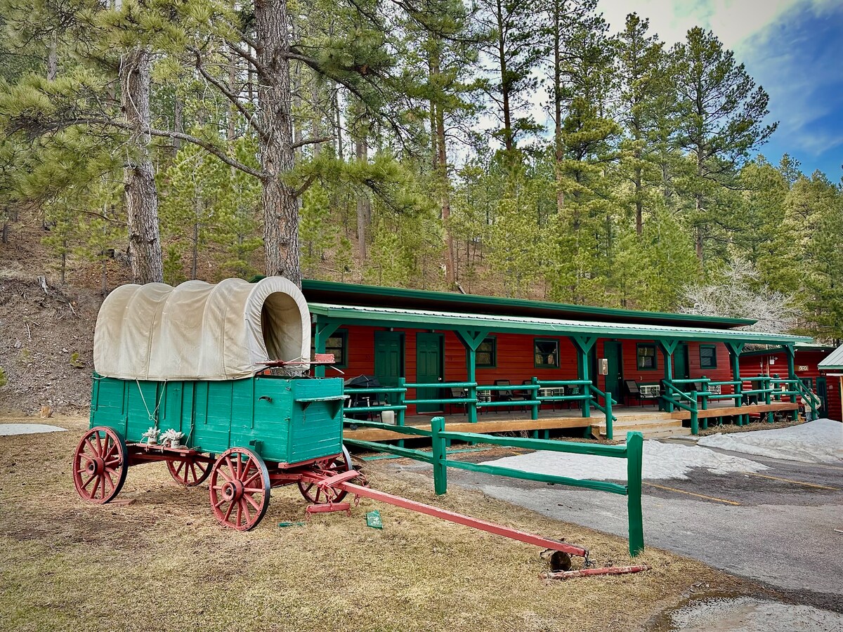Met twee queensize bedden, fris, gezellig beddengoed en ruimte om je uit te strekken, is kamer 17 perfect voor koppels, gezinnen of reisgenoten. Je vindt er alles wat je nodig hebt: handdoeken, een haardroger, een koffiezetapparaat, een magnetron, een koelkast en eenvoudige borden en kopjes. Stap naar buiten naar je eigen koffieset en geniet van de rustige dennenomgeving. Dit is een betaalbare accommodatie in de Black Hills.