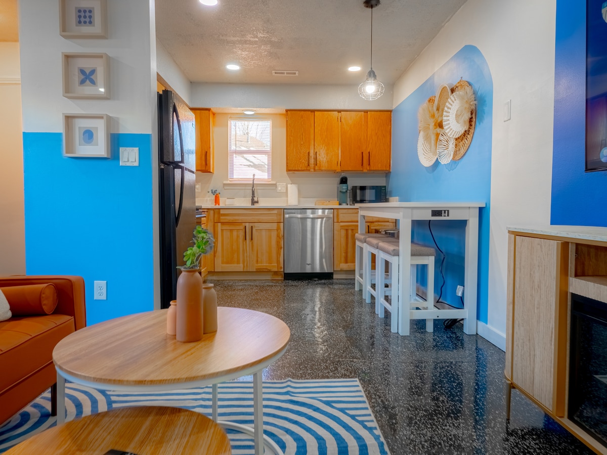 Centraal gelegen loft in het centrum van Lawrence op het 8e blok van Massachusetts St. Dit uniek gelegen appartement is compleet met een eigen parkeerplaats voor twee auto's uit de steeg, geen meters nodig. Geniet van alles wat Lawrence te bieden heeft op een steenworp afstand van je voordeur! Het gebouw is volledig gerenoveerd in 2019 en heeft veel geschiedenis en oude charme met up-to-date comfort, waaronder zachte bedden. Profiteer van onze geschenkmand gevuld met freebies voor koffie, bier, kaarsen en etc!