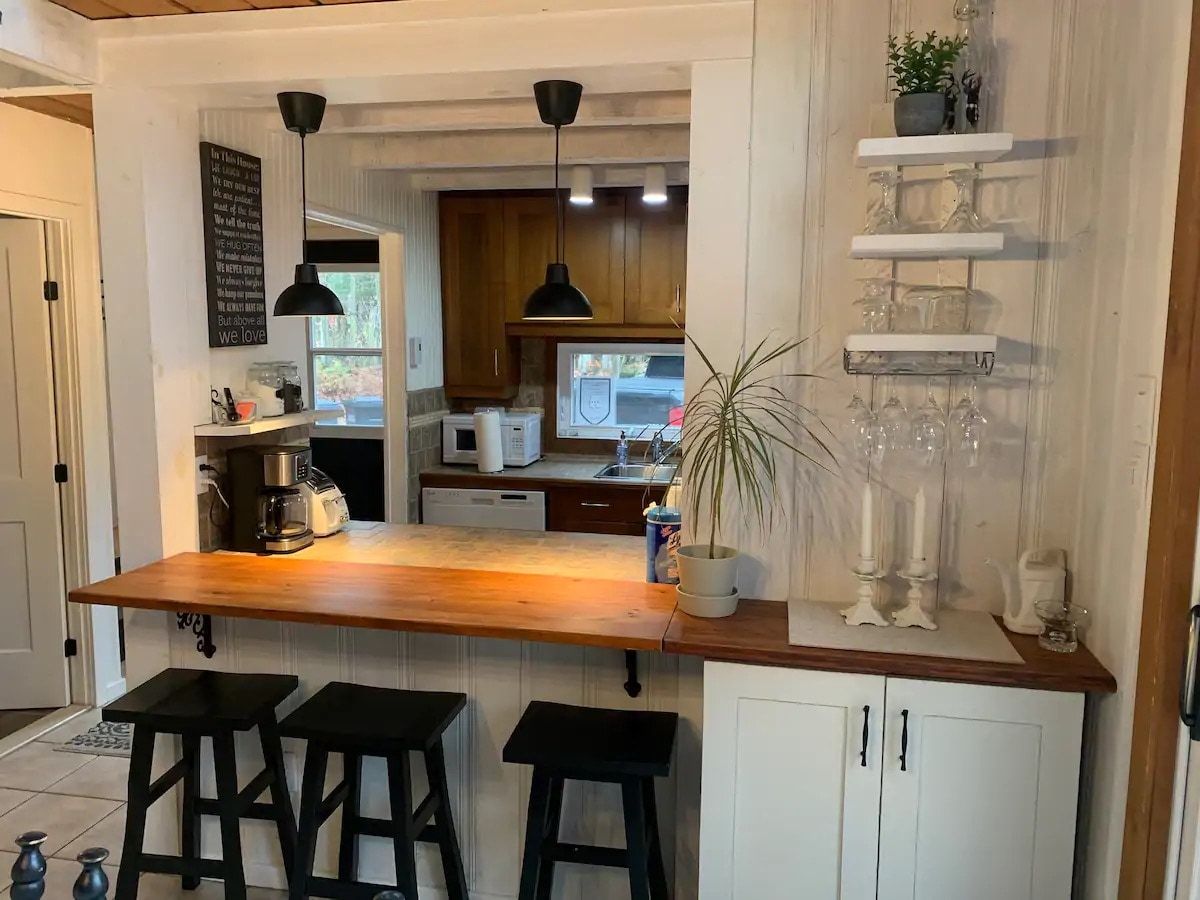 Monumental open concept, in the heart of nature. Access to trails directly behind the house. Wood stove, large modern bathroom, one bedroom + sofa bed. Another sofa bed in the living room. Ideal chalet for a couple with children or two couples. Wild birds, turkey, and deer lovers welcome! Wifi and EV charger included. Dogs Welcome! CITQ : #308038