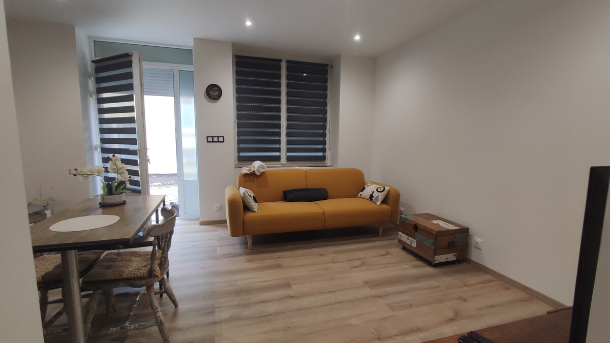 LE COCON, comfortabel appartement van 40 m2 met terras gelegen in Creusot nabij het hart van de stad. Het appartement is gelegen op de begane grond, het heeft een volledig uitgeruste keuken, woonkamer om te ontspannen en beveiligde wifi. Dicht bij alle voorzieningen, de plek is rustig, we heten je van harte welkom" Herinnering: appartement voor 2 personen, mogelijkheid voor 1 kind na overleg.