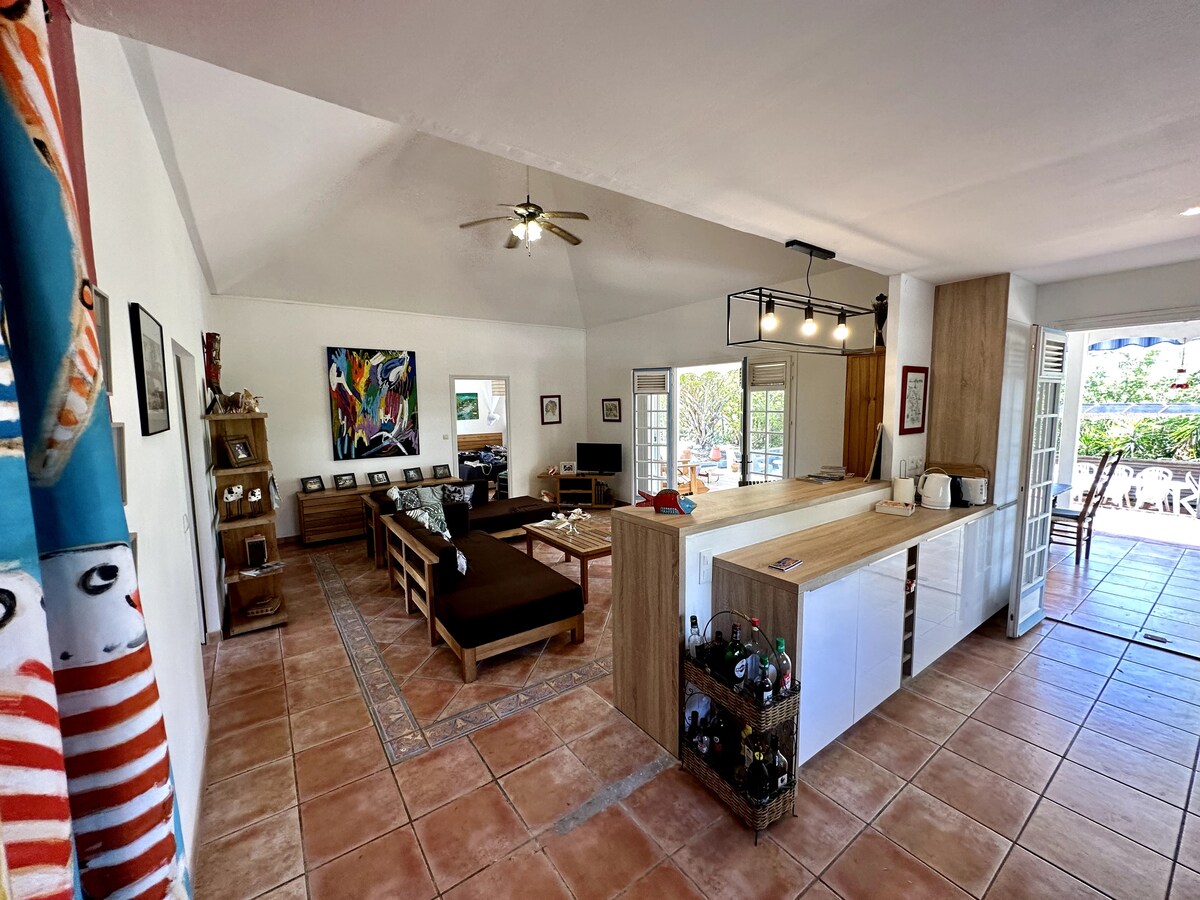 Bijgewerkte, moderne 3 AC slaapkamers, 2 badkamers met privézwembad en uitzicht op de Caribische zee. 5 minuten rijden naar het strand, het centrum van Diamant met winkels, restaurants en markten. 20 minuten rijden van de luchthaven Fort de France. De villa is volledig uitgerust met een wasmachine, vaatwasser, strijkijzer, koffiezetapparaat, broodrooster, blender, rijstmachine, bbq, 2 tv's, Apple TV, magnetron, oven, koelkast, enz. Verhuurders komen oorspronkelijk uit Martinique en kunnen aanbevelingen doen voor bezienswaardigheden op het eiland. Perfect voor gezinnen en koppels.