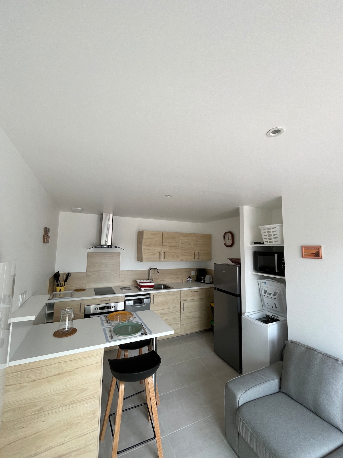 34 m2 nieuwe T2-ruimte gelegen naast onze hoofdwoning. De accommodatie is onderdeel van ons huis, het is gescheiden door een luchtsluis met een afgelegen deur en gesloten tijdens verhuur. Een woonkamer keuken van 17 m2 met ingang van de accommodatie en slaapbank (2 plaatsen) Een prachtige kamer van 12 m2 met eigen toegang tot de binnenplaats en uitzicht op het moeras Een toiletruimte van 5 m2. Zeer rustige buurt Op slechts 10 minuten fietsen van Saint Gilles Croix de Vie. Volledige voet, functioneel en makkelijk bereikbaar