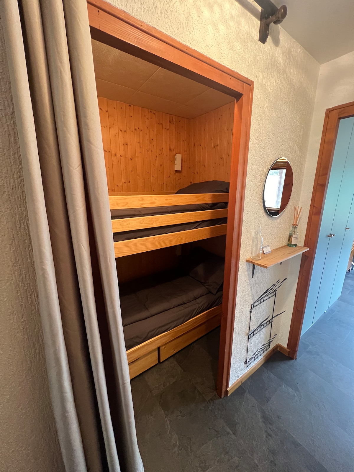 In het hart van het dorp Le Grand Bornand Privé-parkeerplaats voor de woning Het appartement is opnieuw ingericht Woonkamer met slaapbank (gemakkelijk te openen), flatscreen Smart TV en internettoegang Een slaapgedeelte met een stapelbed en een uitschuifbaar bed Een badkamer met, grote douche, handdoekdroger, wasmachine. Een kitchenette uitgerust met een microgolfoven, een koelkast, een keramische kookplaat en een vaatwasmachine. Terras van 6m2 Een kleedkamer om je kleren op te bergen