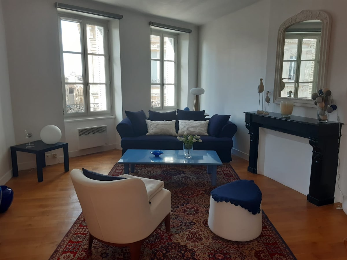 Je bent van harte welkom in mijn mooie 1 slaapkamer appartement typisch "Bordeaux stijl" met zijn kalkstenen muur en zijn extravagante marmeren open haard. Vol karakter, zeer schoon, comfortabel en licht, het heeft de beste locatie in het meest charmante deel van het oude stadscentrum. Gemakkelijke toegang te voet tot alle plaatsen in het centrum Het appartement is op de 1e verdieping van een 19e-eeuws gebouw. Er is een OPENBARE PARKEERPLAATS (NIET GRATIS) genaamd "Camille Julian" op 20 m van het gebouw.