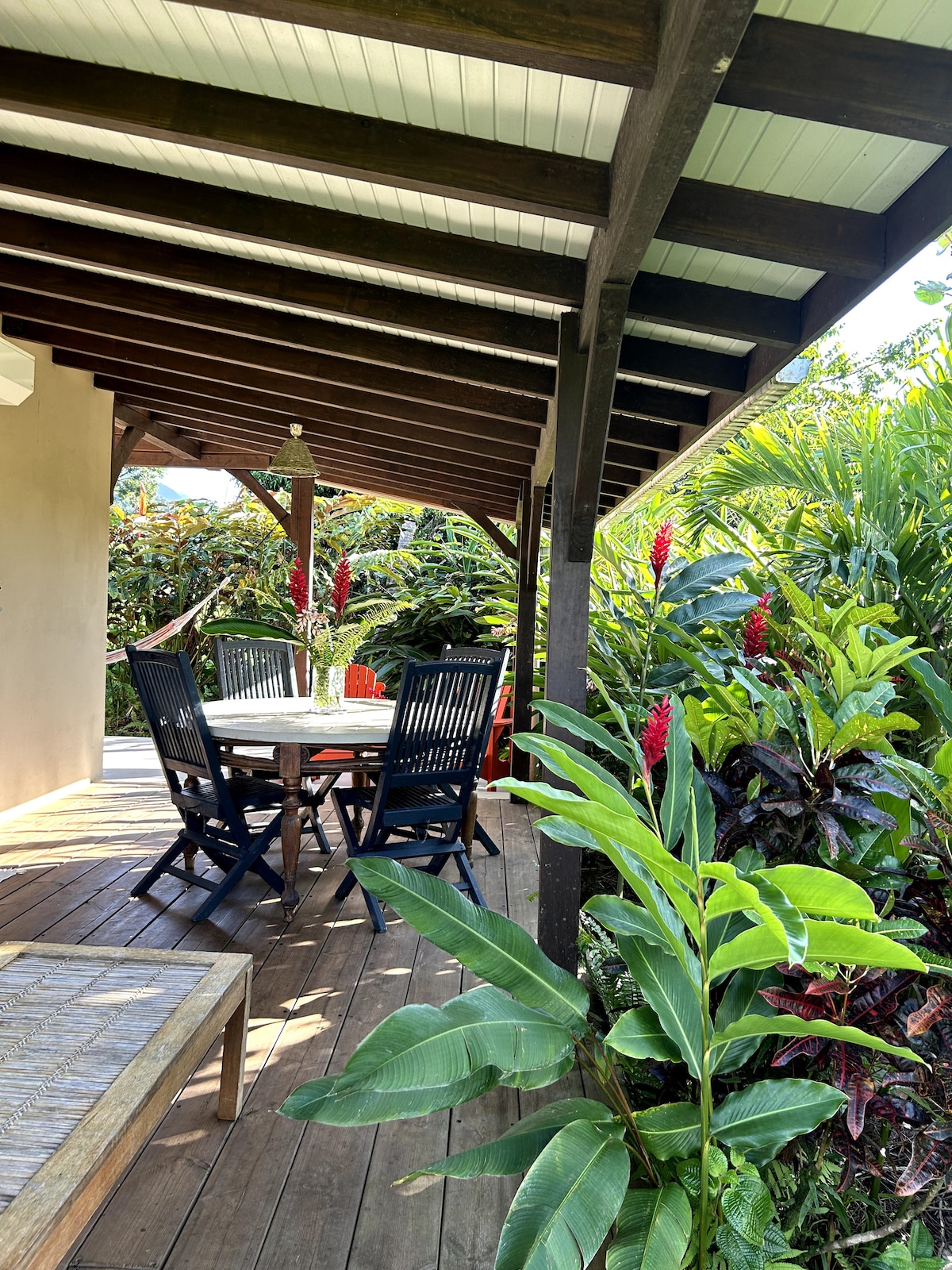 In het hart van een privéterrein van 4 hectare beplant met fruitbomen en tuinieren biedt Bungalow les Atoumaux, met een oppervlakte van 60 m², een buitengewoon en ontspannend uitzicht op de Pelee en de Caribische Zee. Dicht bij het huis zijn we beschikbaar om u te adviseren en gezellige momenten uit te wisselen.