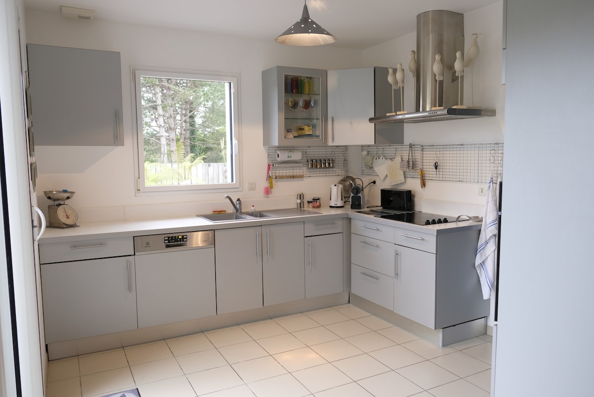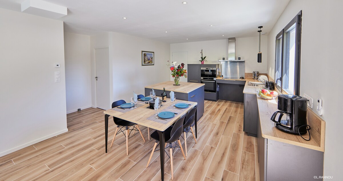 Uniek ! Design strandhuis in Morbihan in Bretagne! Directe toegang tot het strand aan het einde van de tuin, Het huis is nieuw, volledig uitgerust en jullie zijn de enige bewoners van het terrein, Direct uitzicht op het strand / de zee vanuit de woonkamer, de keuken, het terras, het dakterras en een van de slaapkamers boven. Lakens, handdoeken en schoonmaak inbegrepen, wasmachine en droger Veel activiteiten in de buurt: wandelingen, fietsen, kajakken, kitesurfen, boomklimmen, culturele bezoeken, varen...