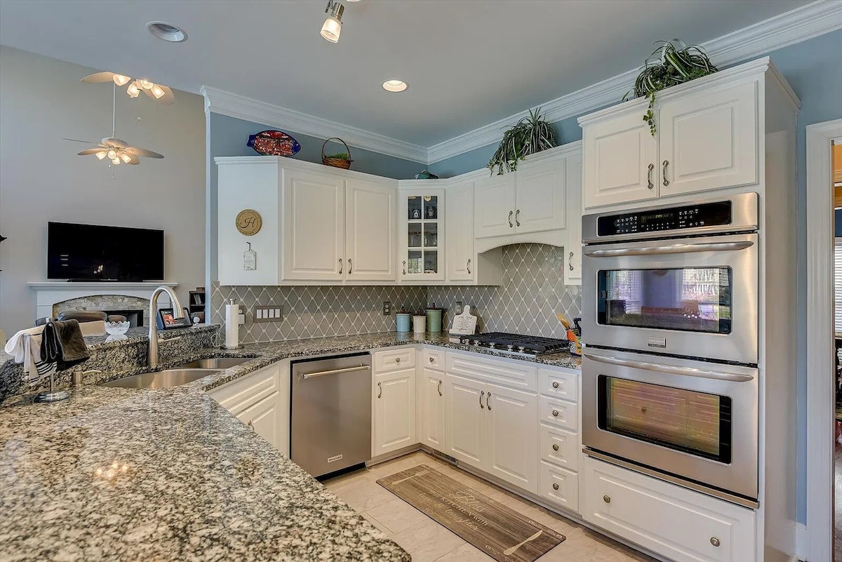 *No cleaning fee* Unwind in the spacious "Big Blue" overlooking a beautiful wood line along the Euchee Creek Greenway. Big Blue is set along the outer rim of a great neighborhood with no neighbors behind the property. This is perfect for sitting on the deck and enjoying the woodsy view with a large cup of coffee from our complimentary coffee bar. Whether you are a Masters tournament patron, traveling business professional, military family, or group of friends, Big Blue is a great fit for you.