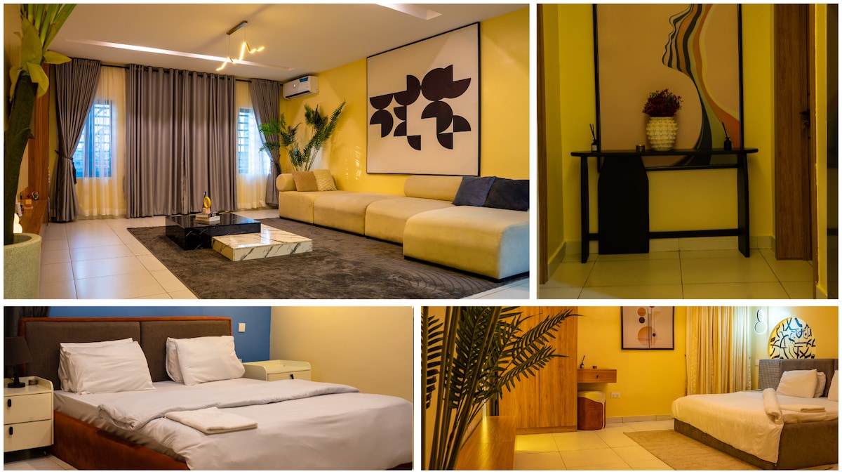 Geïnspireerd door NewYork en Dubai High rise Luxury, is dit appartement met 2 slaapkamers gelegen in het hart van Victoria Island een eerste in zijn soort en biedt een unieke ervaring voor reizigers die op zoek zijn naar iets anders dan de norm. Met een adembenemend uitzicht op het water vanuit het comfort van je kamer en sprankelende magische Ikoyi skyline 's nachts, is je verblijf in Lagos, Nigeria klaar om net zo spannend te zijn als altijd. voorzieningen zoals Ps5, zwembad, tennisbaan en nog veel meer liggen allemaal op je wenken.