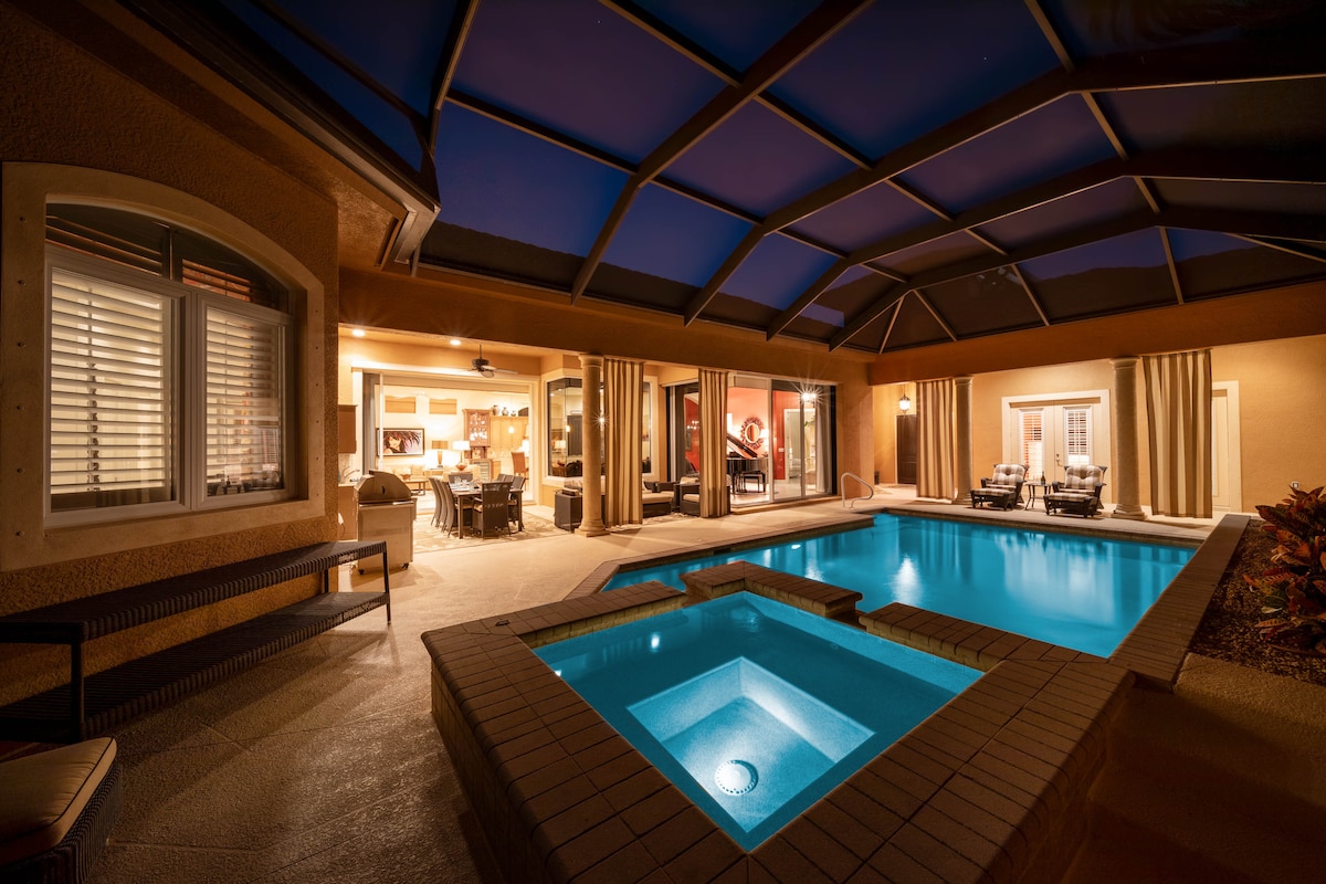 Welcome to Suite Retreat, a pristine, fully stocked haven for relaxation and fun. For a real look before booking, search Suite Retreat Naples YouTube or scan the QR code in the photos section. Enjoy a grand piano, heated pool and spa, outdoor kitchen, eight bikes, beach gear, and thoughtful touches like organic bath products and luxury linens. Located in the exclusive Majors at Lely Resort, this south‑facing, golf‑front home offers true resort‑style living. Welcome to Naples, Florida paradise!