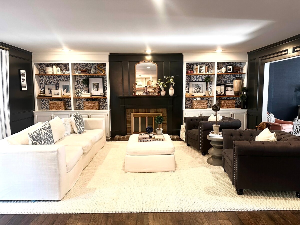 Ontspan in dit met kunst gevulde, onlangs gerenoveerde herenhuis op enkele minuten van restaurants, winkels en entertainment. Twee kingsize slaapkamers met smart-tv 's zorgen voor een geweldig uitje voor twee koppels of een klein gezin. Geniet van de volledig uitgeruste keuken of grill op de eigen patio. De kelder dient als lounge- en kantoorruimte en is uitgerust met een tv, bank, bureau, wasruimte en volledig bad. Loop naar het gemeenschappelijk zwembad of ga naar de banen voor een potje basketbal, tennis of augurken met de meegeleverde apparatuur.