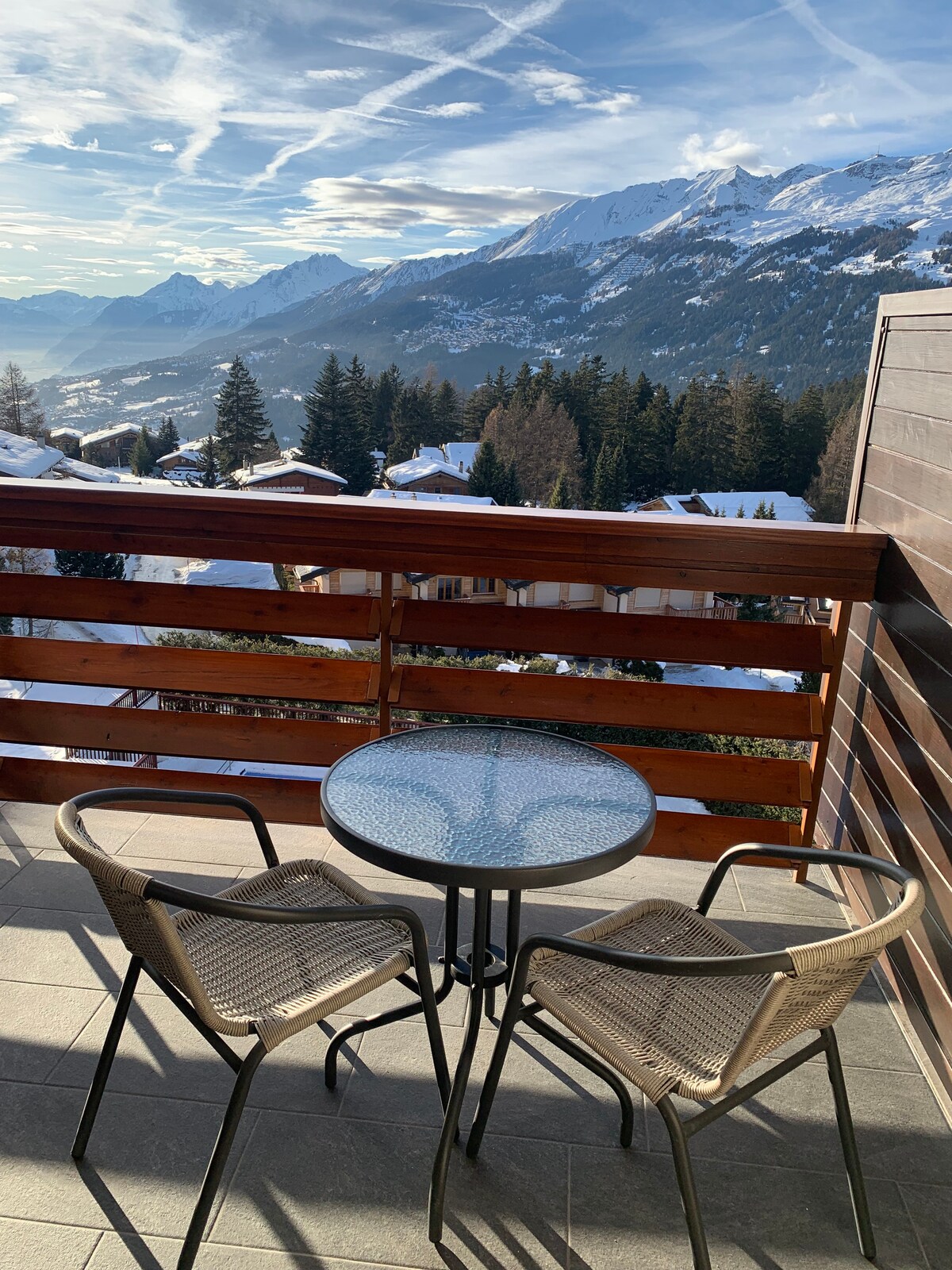 #Studio Crans-Montana. Zwembad,tennis,zonnig balkon.