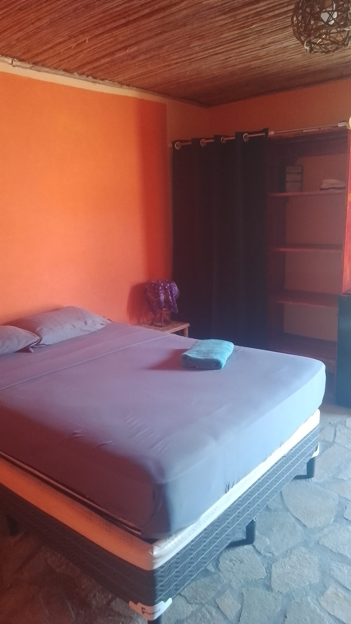 Hallo daar, ik hoop dat je echt van deze gelegenheid gebruik kunt maken van een Cabana aan het strand voor 3 personen met 1 kingsize bed en een eenpersoonsbed met ontbijt inbegrepen en airco, een fris zwembad in het groen geschilderd aan de onderkant. Houd er rekening mee dat we alleen natuurlijk warm water hebben, geen verwarming. De parkeerplaats is gratis en je zult echt genieten van onze hangmatten.
