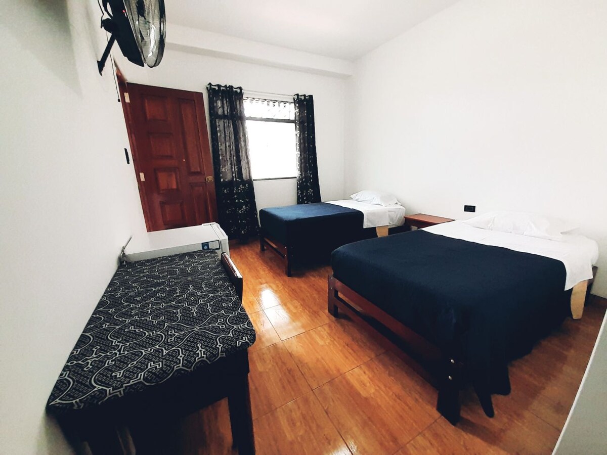 🌿 Comfort in het hart van Tingo Maria 🌿 Je ideale rust wacht op je op slechts enkele stappen van het centrale plein! Verblijf in een comfortabele en eigen kamer uitgerust met een tweepersoonsbed, kabel-tv, snelle wifi en ventilator, perfect om te ontspannen na het verkennen van de stad. Geniet van een onovertroffen locatie, dicht bij restaurants, winkels en toeristische attracties zoals de beroemde Lechuzas-grot. Voel je thuis terwijl je de schoonheid van Tingo Maria ontdekt!