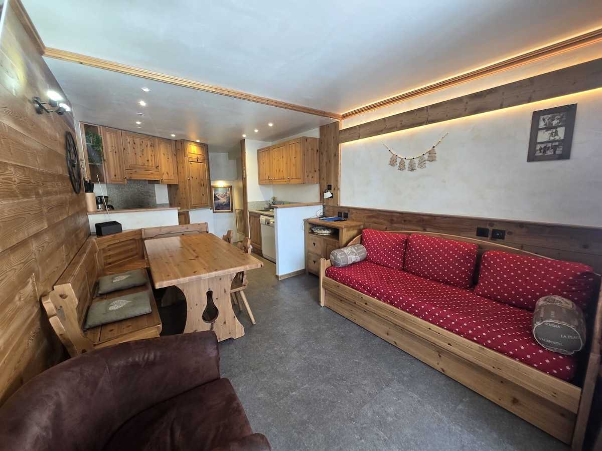 Verblijf in het hart van Val Thorens, op steenworp afstand van winkels, restaurants, spa, zwembad, squash en bowling. Dit 23 m2 grote ski-in/ski-out appartement op de 4e verdieping beschikt over een balkon op het zuiden met een spectaculair uitzicht op de bergen. Volledig gerenoveerd in 2025 in een chique chalet-geïnspireerde stijl, het combineert natuurlijk hout en modern comfort: uitgeruste keuken (oven, magnetron, vaatwasser, raclette grill), half afgesloten nis met 160 cm bed, premium slaapbank, elegante badkamer en smart-tv.