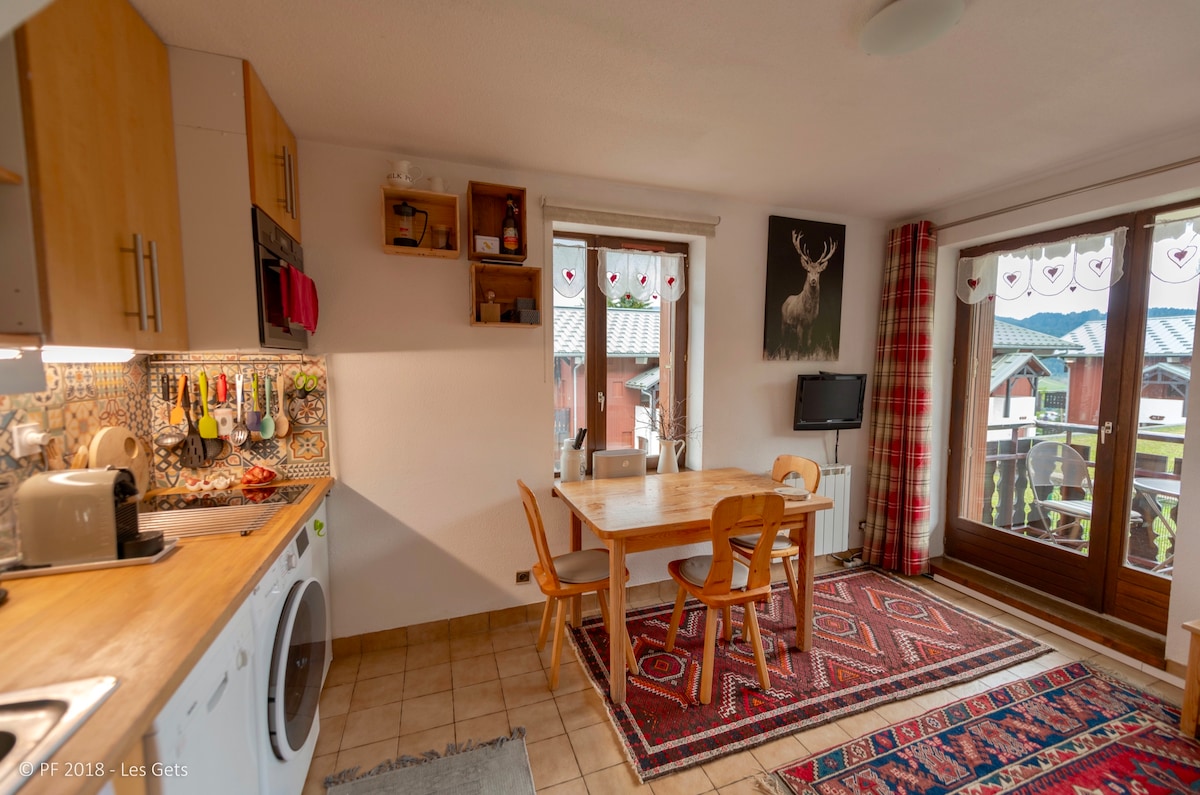 In het hart van Les Gets, rustig, balkon aan de tuinzijde, 51 m²